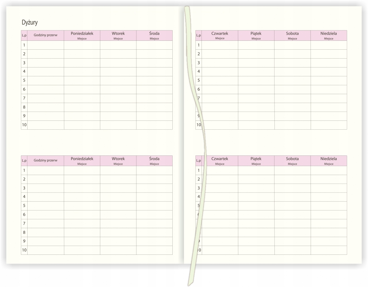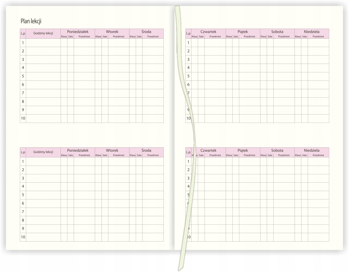 Щоденна система - кожен день на окремій сторінці, субота та неділя на загальній сторінці. До кожного місяця додаткова сторінка місяця місяця.