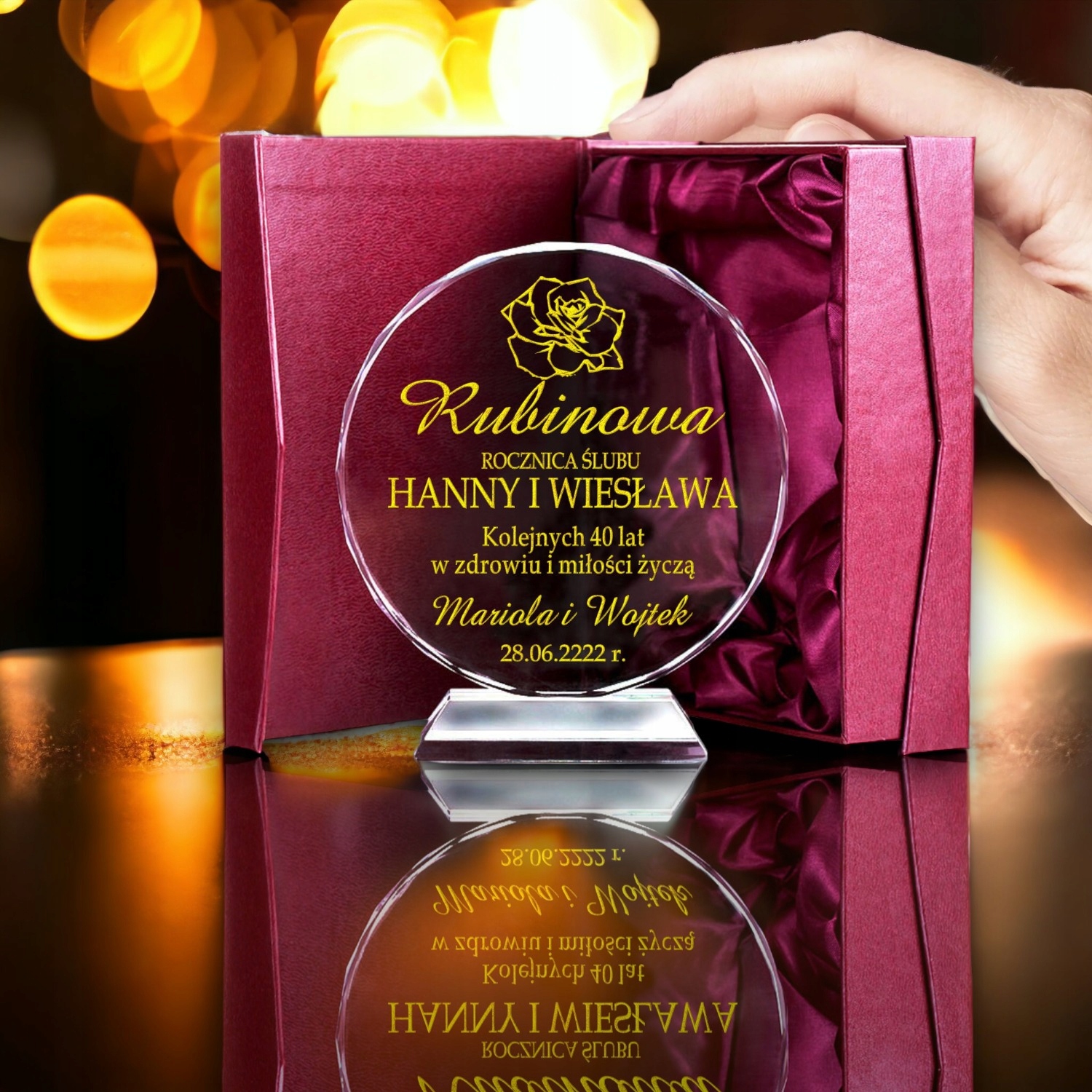 Красиво a кришталева статуетка з вашою присвятою та ручним позолоченим/посрібленим гравіюванням неодмінно стане престижним подарунком для коханої людини на будь-яке свято. У вартість також входить декоративний подарунковий футляр.