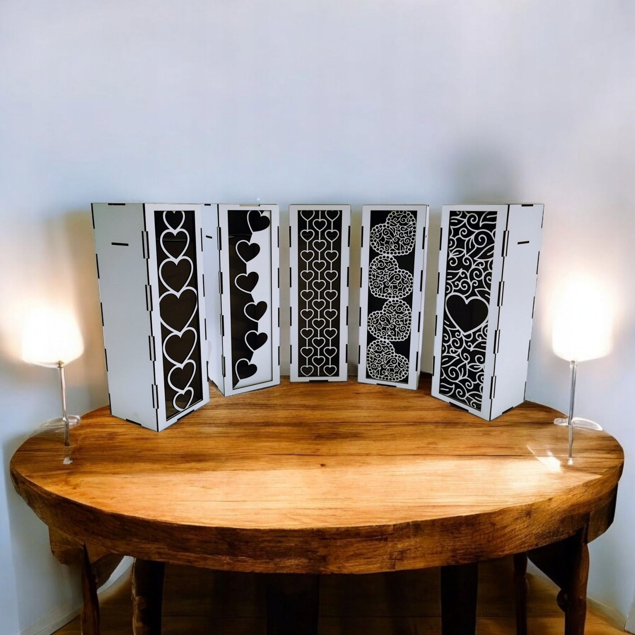 Ви шукаєте унікальну подарункову упаковку? Наш елегантний алкогольний коробка - чудовий вибір! Виготовлений з білого HDF 3 мм товщиною , поєднує стиль, довговічність та унікальний дизайн.