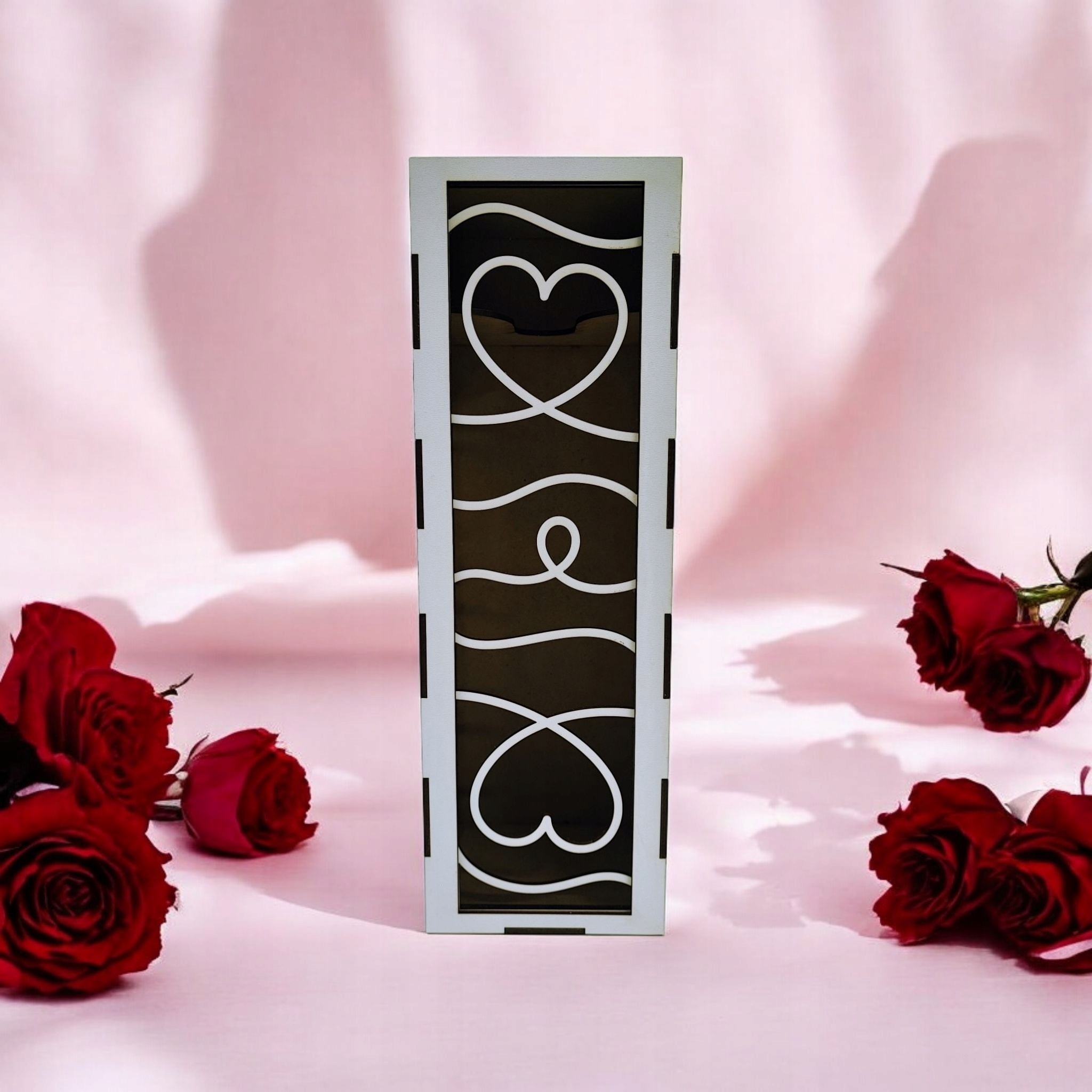 Передня стінка коробки прикрашена одним із 10 романтичних візерунків на любов та тему Валентина ❤. Виберіть той, який найкраще дає свої почуття!