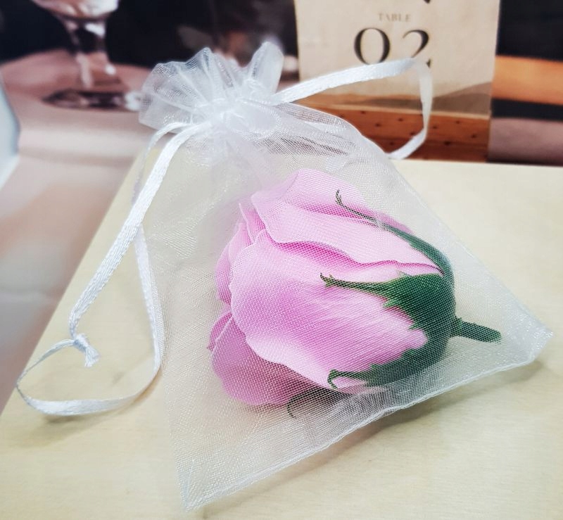 Мильна троянда в пакетику з органзи з чудовою підвіскою, на якій можна написати ім'я одержувача.
