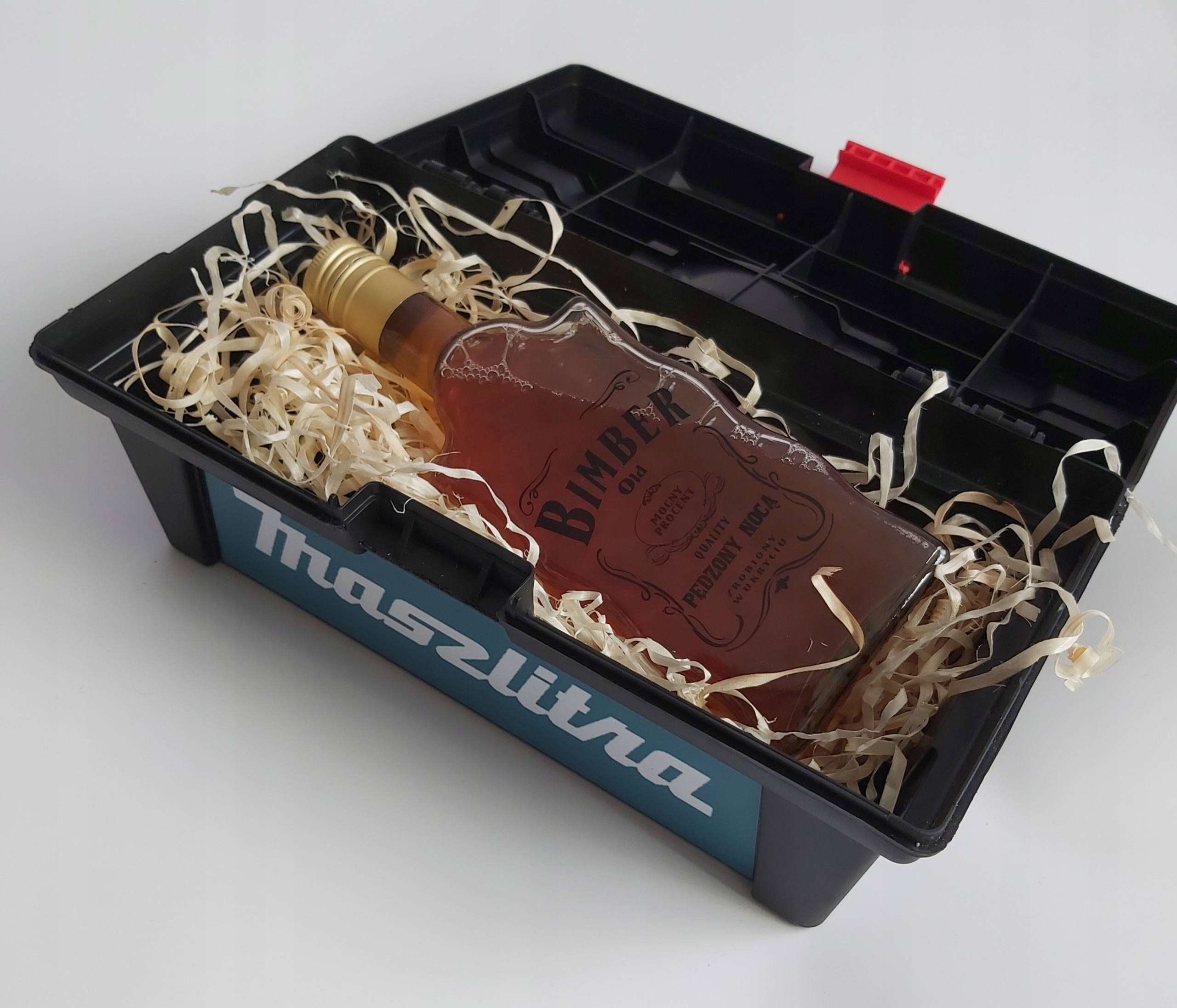 Шукаєте оригінальний і функціональний подарунок для хлопця, який любить інструменти та приладдя для майстерні? У нас є щось для вас! Пропонуємо пластикову коробку з написом "Maszlitra", стилізовану під популярний інструмент марки "Makita".