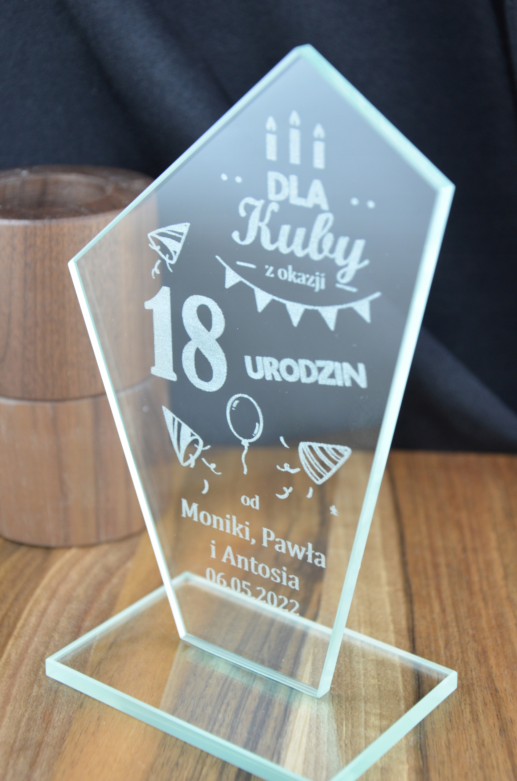 Подарунок на день народження - скляна статуетка з гравіюванням