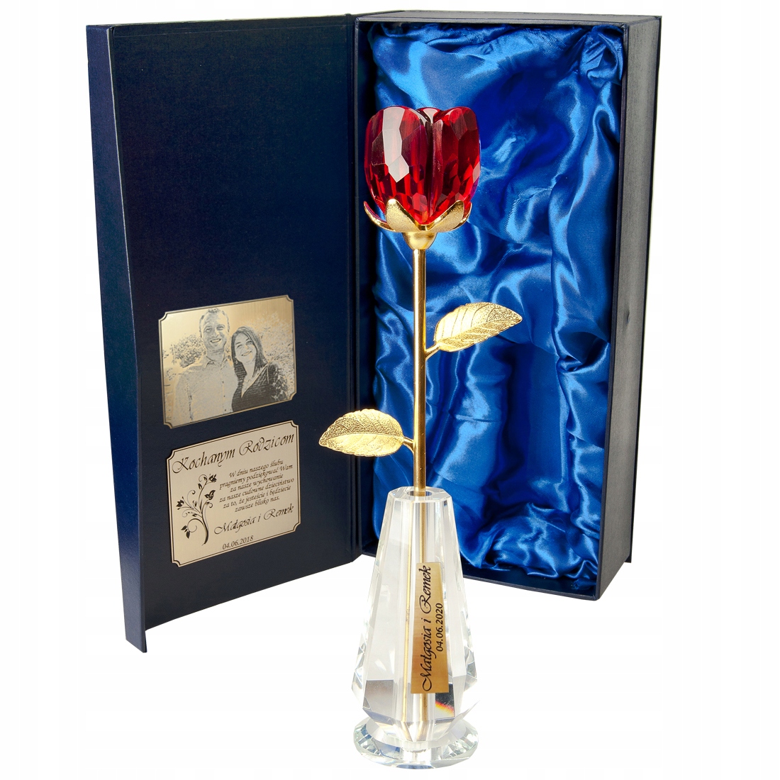 Ви думаєте, який подарунок вибрати в якості подяки своїм батькам або близьким? Збираєтеся на вечірку і не знаєте, що купити імениннику чи іменинниці? Ця троянда буде ідеальним вибором! Це єдина на цьому аукціоні висота до30 см. Квітка троянди була виготовлена з b > бордовийкришталь, який потім ограновували вручну. Голова, до якої кріпиться квітка, виготовлена з металу, пофарбованого в золото. Листя стебла виготовлені з великою точністю та дбайливістю. У набір також входить кришталева прозора ваза для троянд ручної огранки з табличкою з вашою присвятою > (підпис), щоб троянда виглядала красиво на почесному місці в кожному домі. Все це упаковано в жорсткий блакитний футляр із блакитним атласом всередині, до якого також додається табличка з присвятою. Троянда ідеально підходить як подарунок на день народження , іменини, День матері, Жіночий день, День святого Валентина, кінець року і як подарунок без приводу - чому? Жінки завжди любили квіти, і вони ніколи не втратять своєї пишності. Людина, яка отримає подарунок такої високої якості, неодмінно буде в захваті, а ви будете пишатися тим, що змогли подарувати їй.