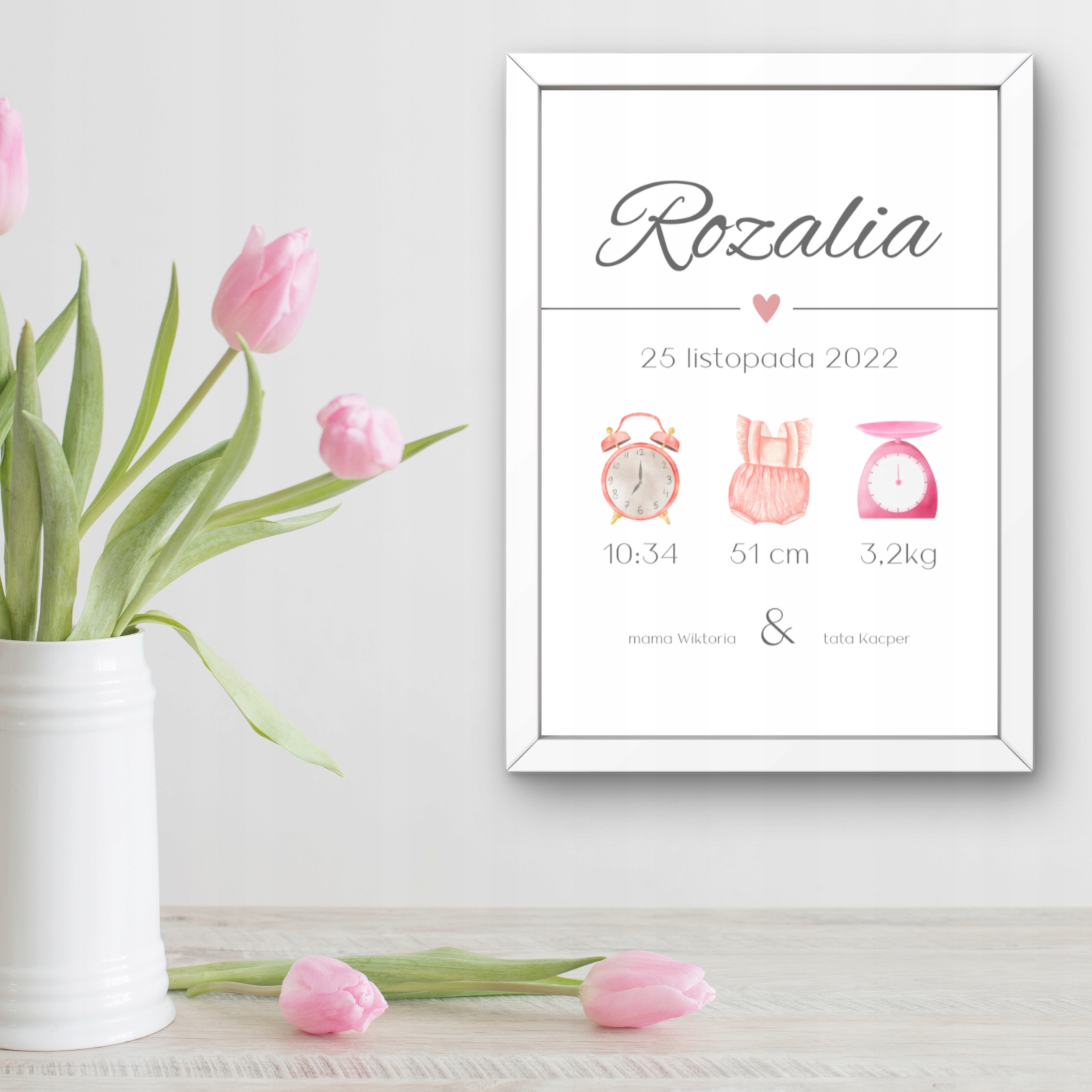 - Свідоцтво про народження – це персоналізований плакат, який містить усі важливі деталі з дня народження дитини.