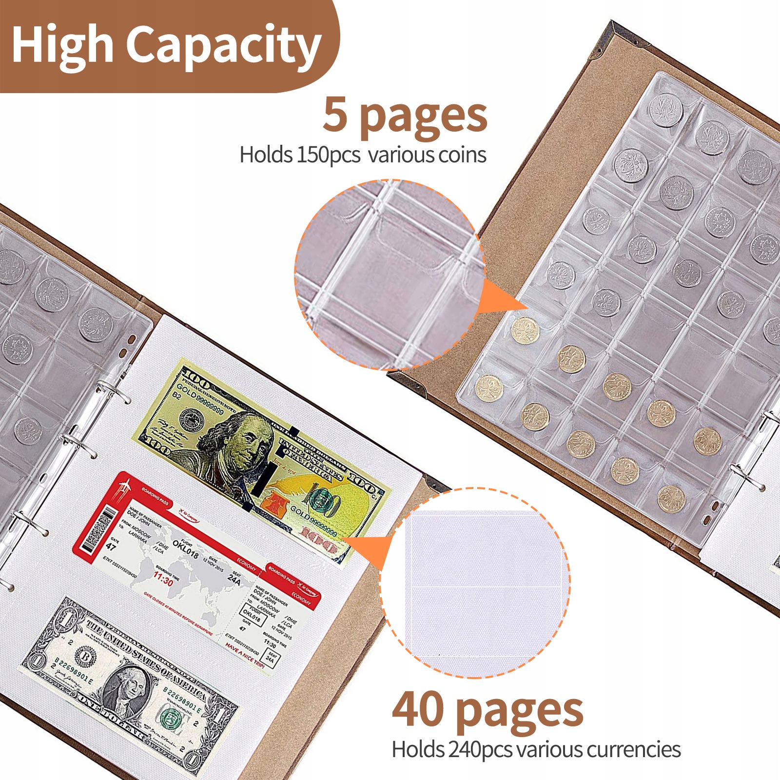 Відмінний захист: кожна сторінка виготовлена з високоякісного, товстого, прозорого матеріалу; Забезпечує відмінний тривалий захист банкнот, запобігання згасання та зносу, підтримуючи їхню цінність протягом багатьох років