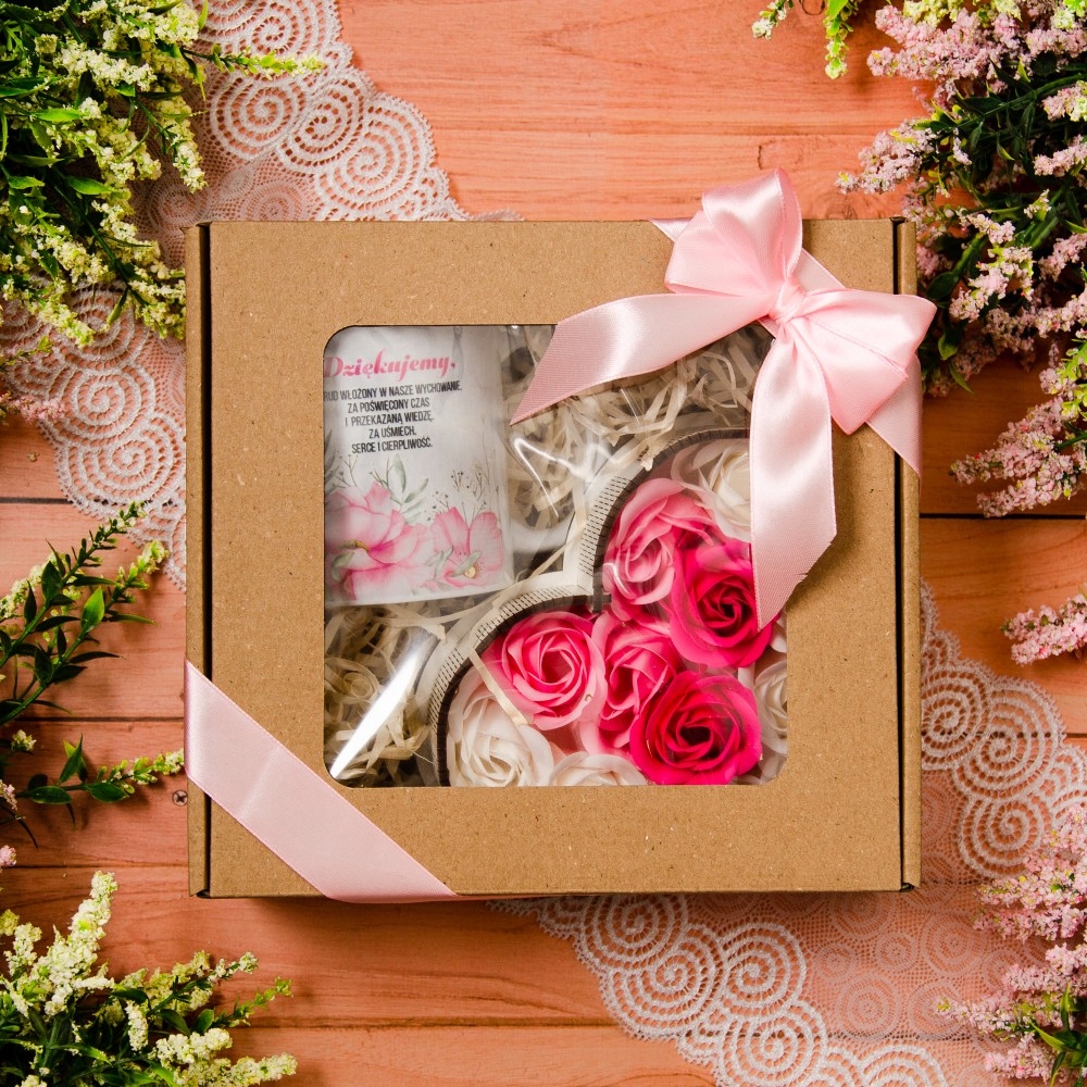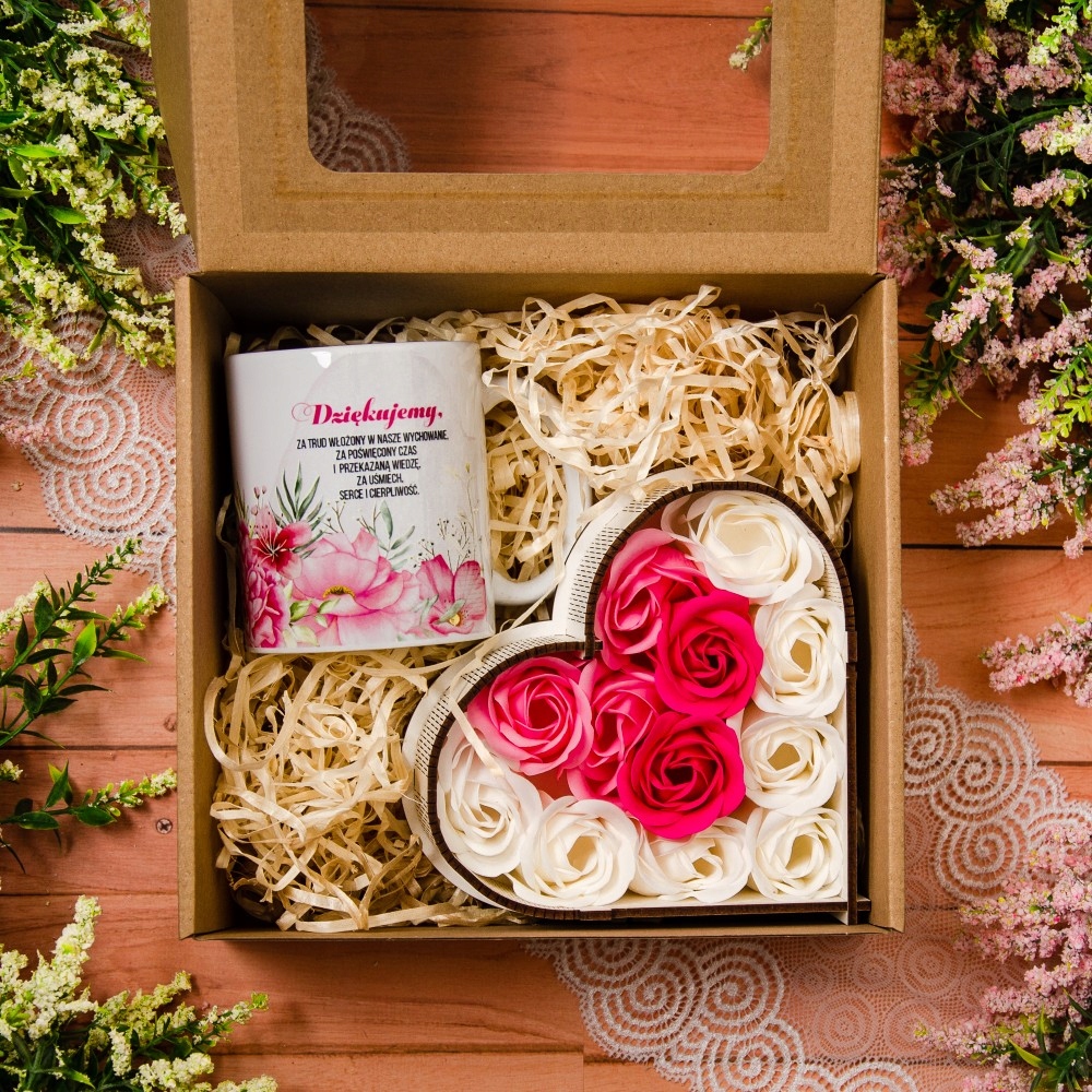 Подарунок, встановлений з нагоди Національного дня освіти. Набір включає чашку та коробку з милом. Весь набір упакований у декоративну коробку. Кубок завдяки вчителю.