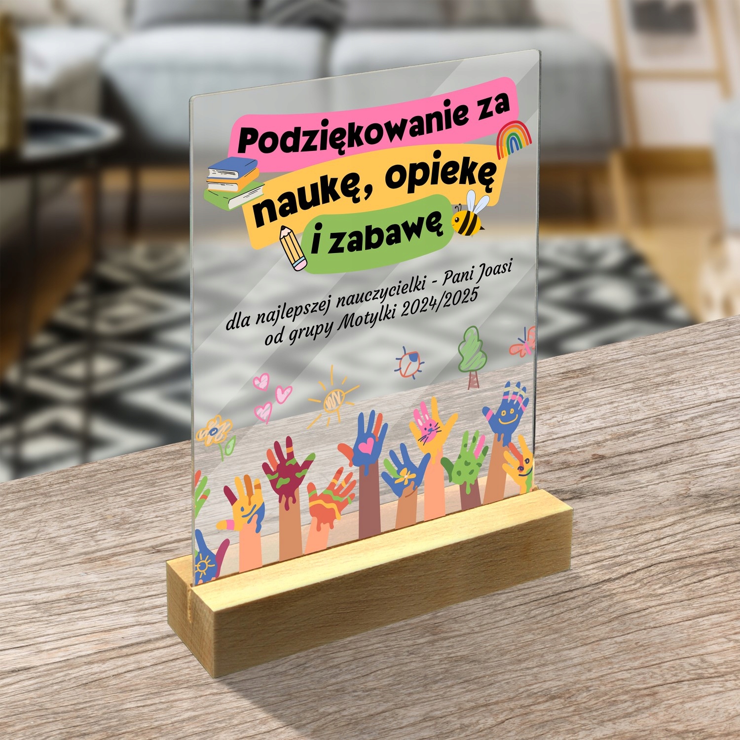 Подарунок на день вчителя - персоналізована статуетка на акриловому склі з елегантною підставкою