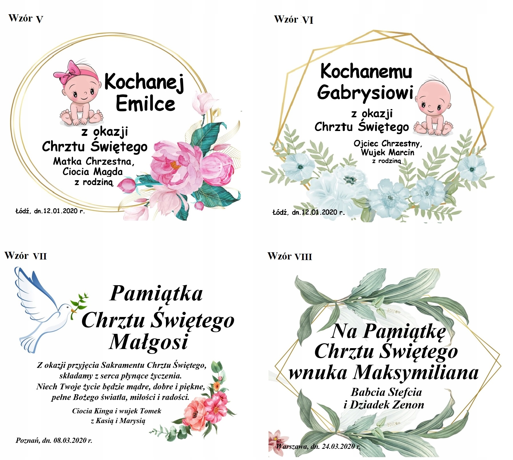 Нижче представлені шаблони присвят - ми змінюємо дані щодо імені дитини, підпису, міста та дати.