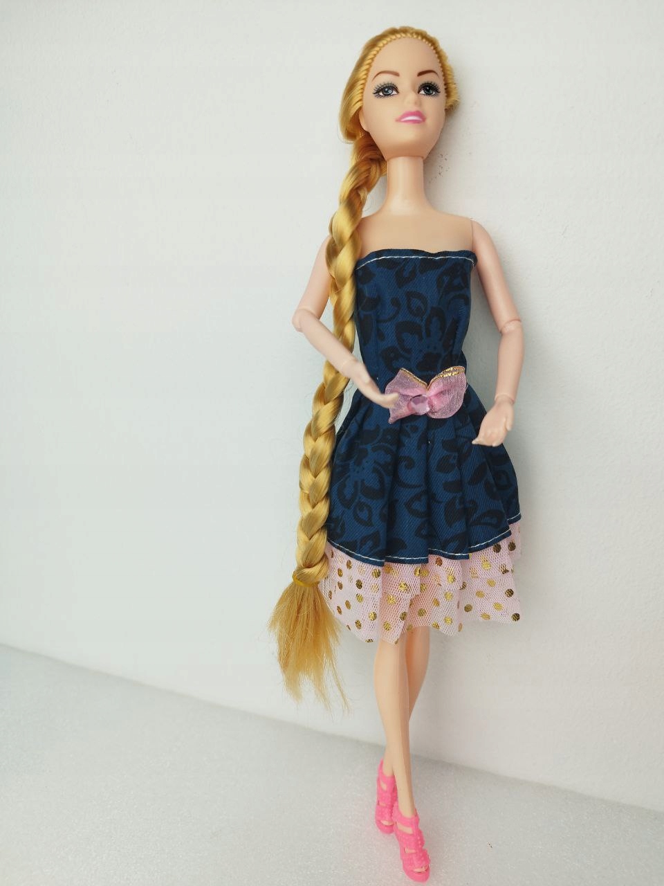 Ми пропонуємо прекрасну ляльку з довгою золотою косою, яка стане улюбленим супутником кожної дівчини. Лялька одягнена в елегантне, синє плаття, прикрашене яскравим малюнком внизу, що надає йому унікальної принадності.