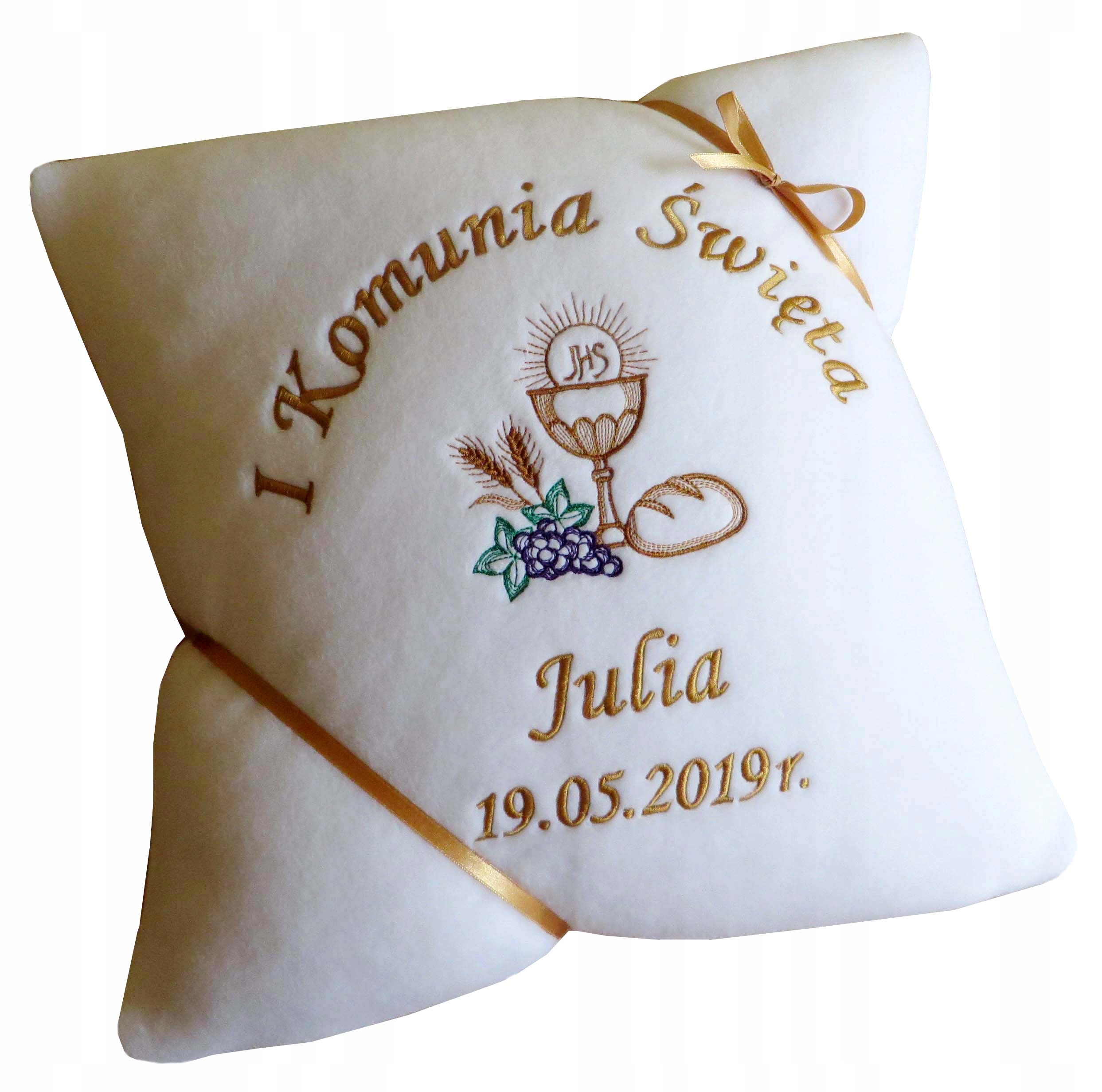 Пропонуємо унікальну подушку з Вашою індивідуальною вишивкою, яка стане чудовим сувеніром до Першого Святого Причастя.