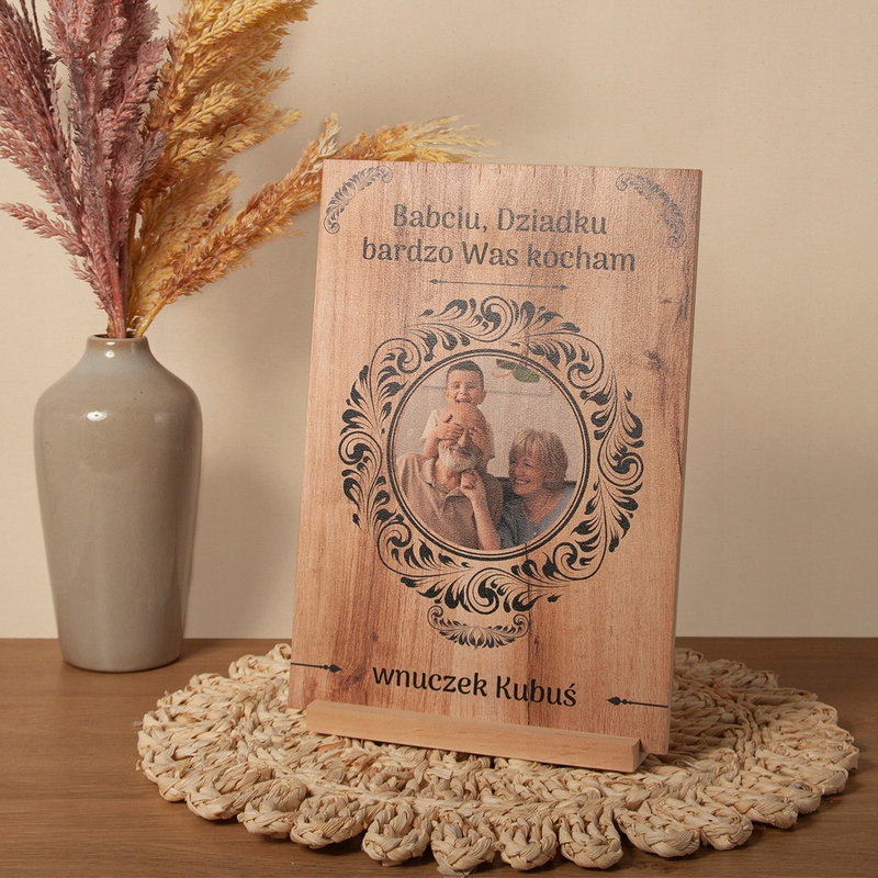 Ви можете розмістити власну фотографію та будь-який текст на табличці з підставкою кольору натурального дерева. Багато шаблонів на вибір, включаючи популярну рамку Spotify. Високоякісний УФ-друк безпосередньо на дошці стійкий до погодних умов. Найякісніший розбірливий друк чудово виглядає на дерев’яній поверхні.