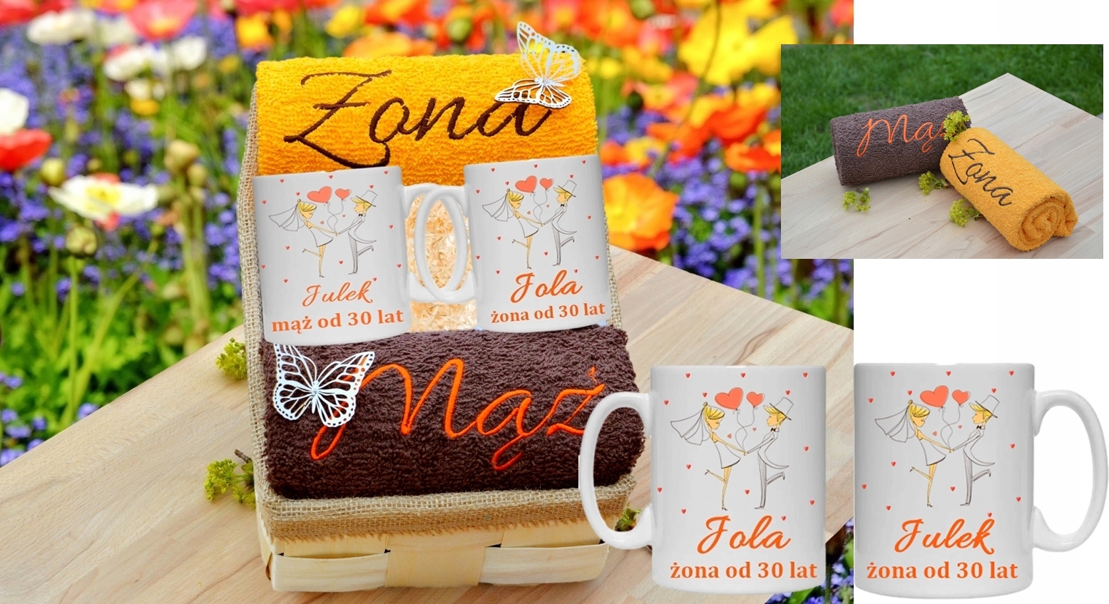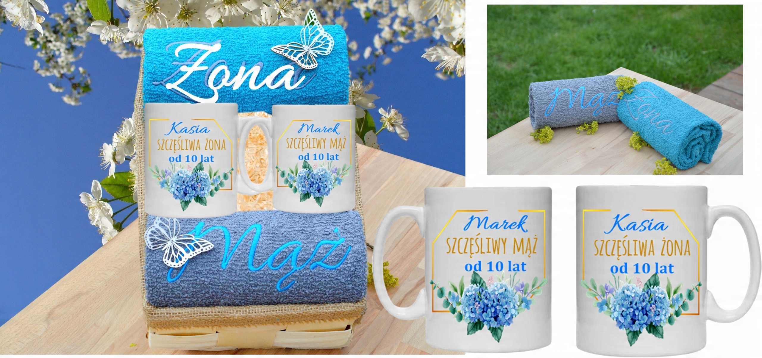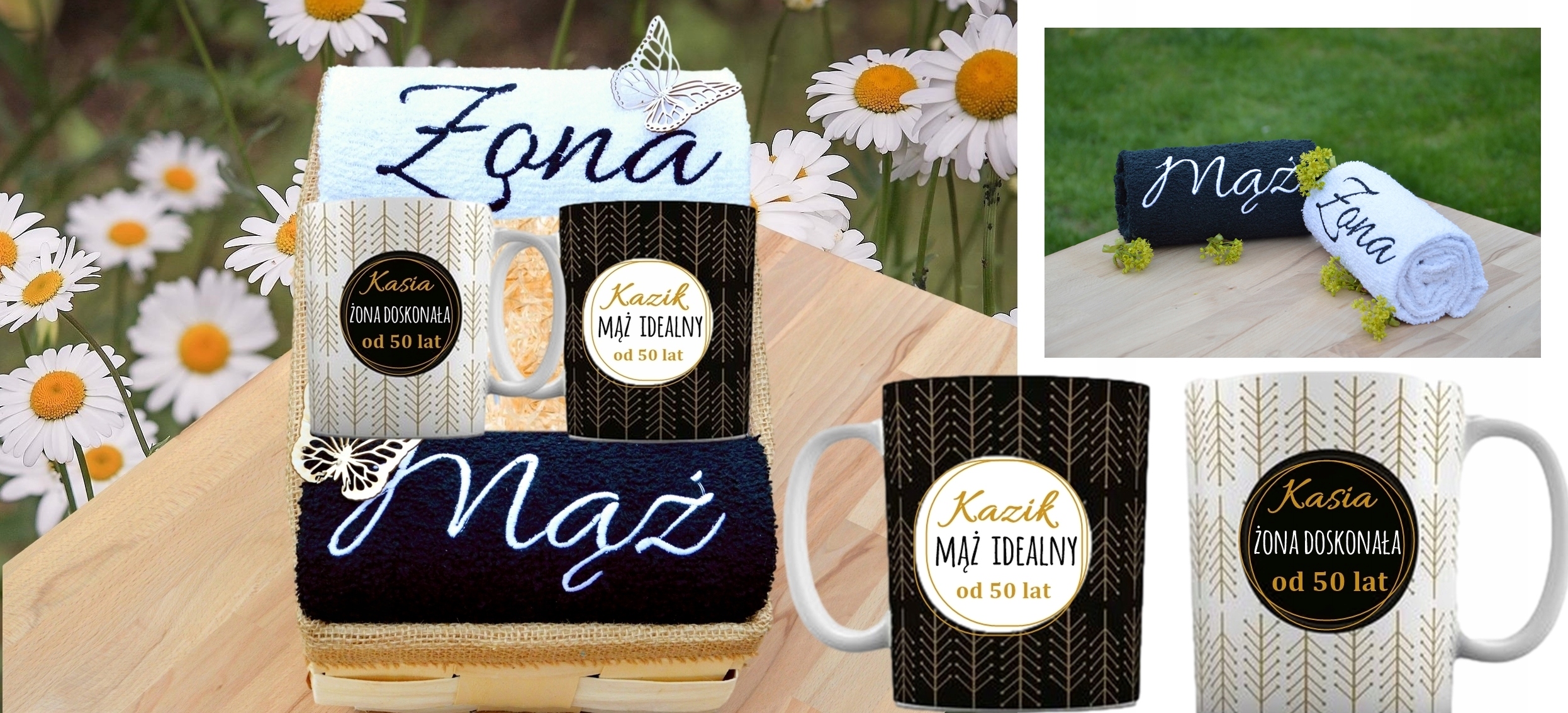 з вишивкою Дружина - Чоловік на рушниках та написами на кухлях