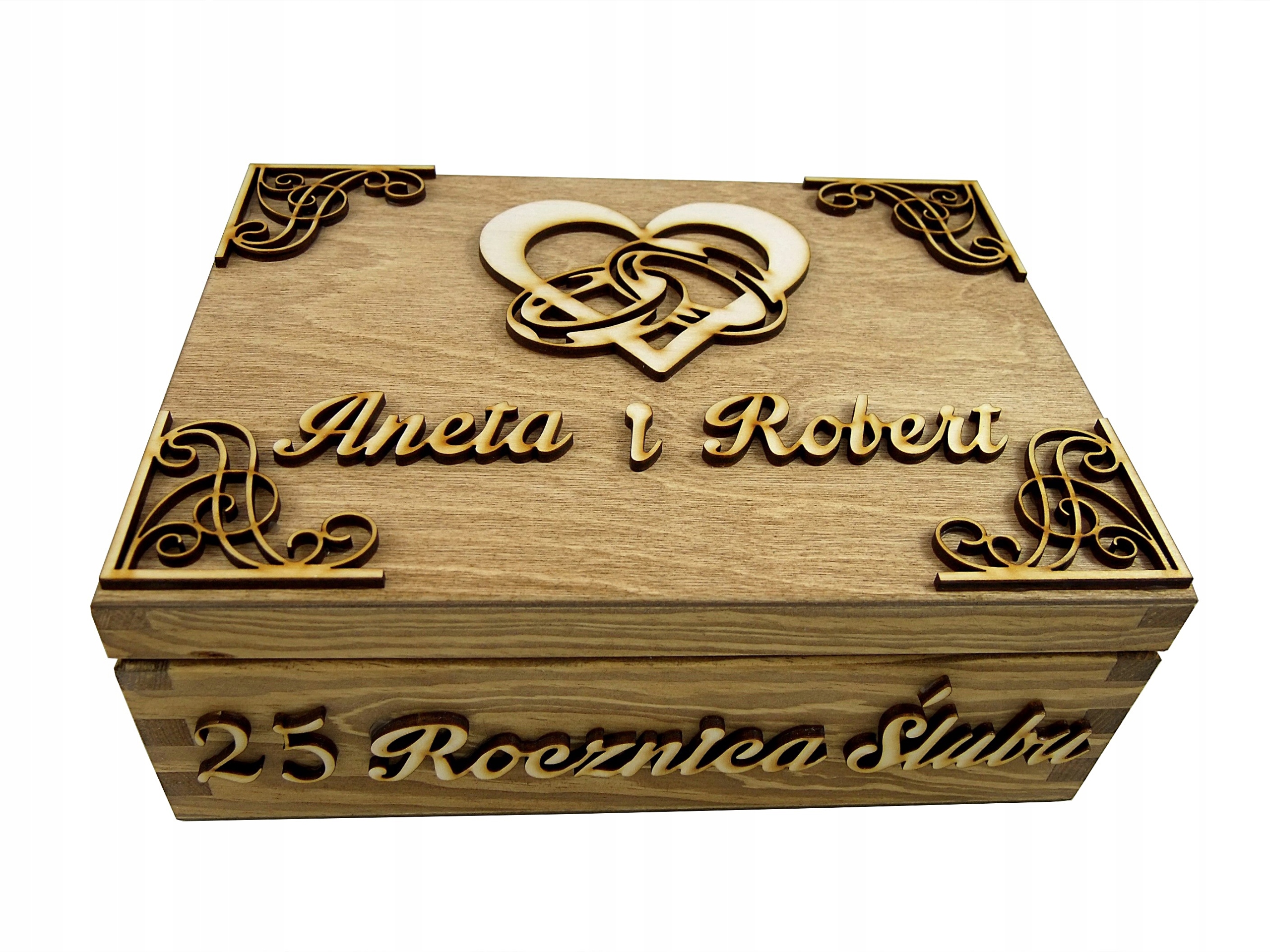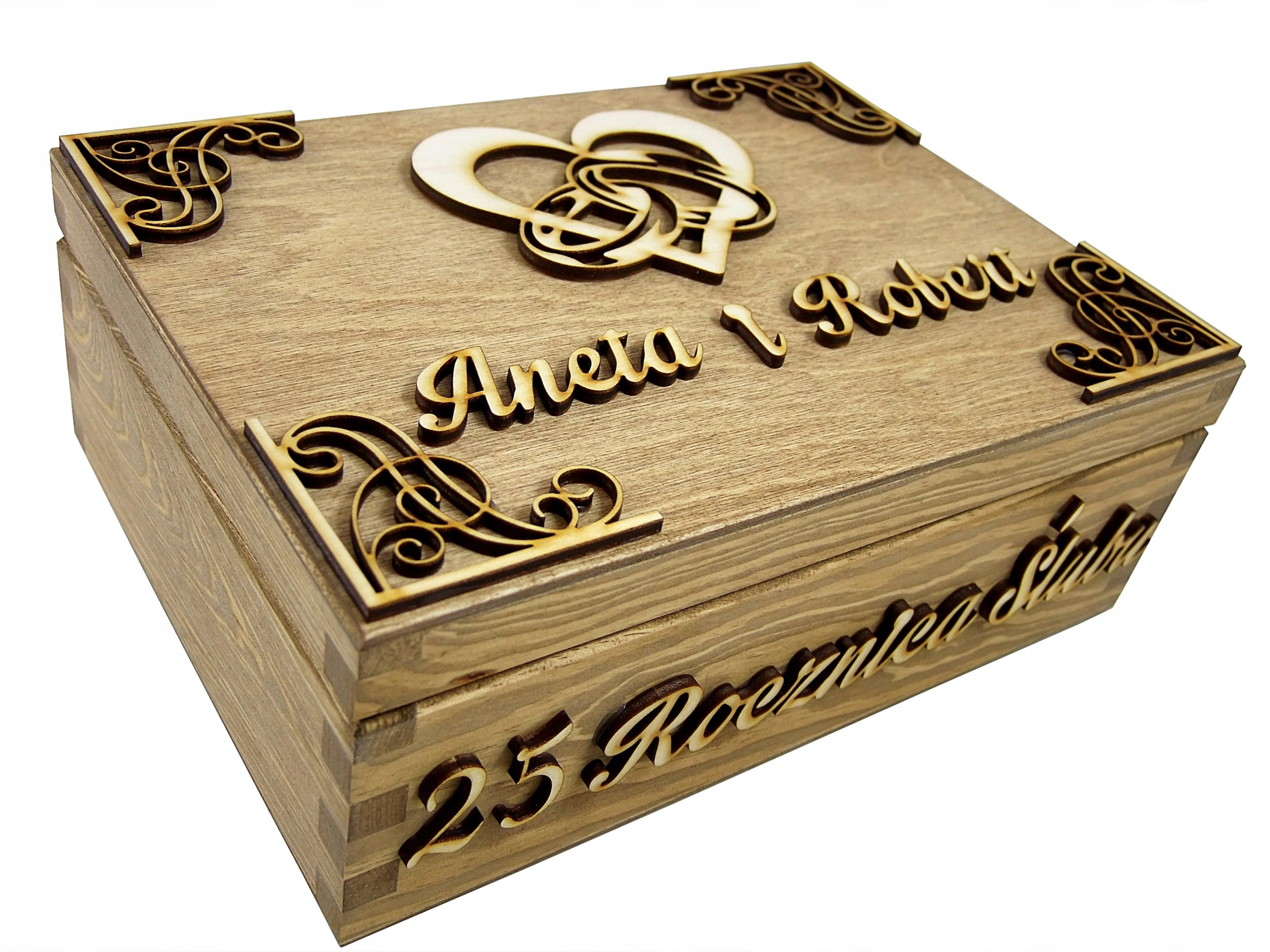 Дерев'яна скринька в горіхового кольору з натуральними аксесуарами