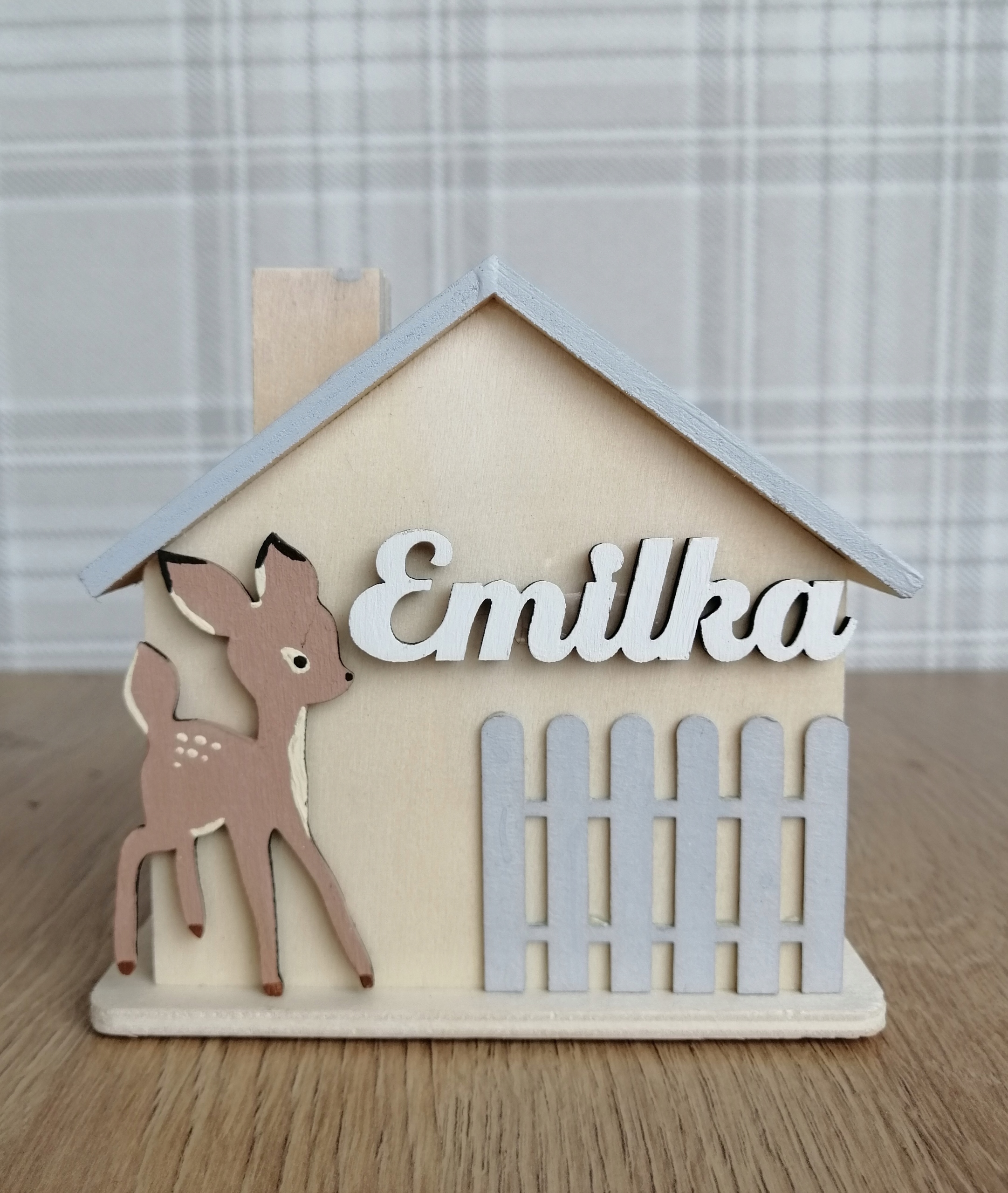 Дерев’яний, підготовлений ручним будинком -Скигі -банк, стане ідеальним подарунком для кожної дитини для різних випадків. На передній частині скарбнички є паркан і розписаний рукою декор. Наверху у видимій місці є дерев’яний напис із назвою дитини.