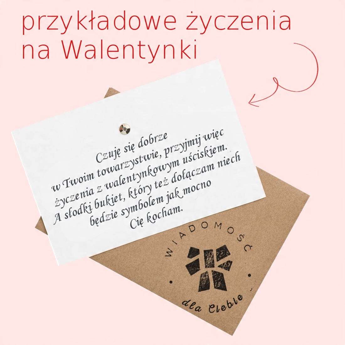 Ми безкоштовно додамо Ваші побажання в букет в ошатному конверті . Посилка буде декоративно упакована і неодмінно зворушить одержувача. Немає кращого способу створити індивідуальний солодкий сюрприз до Дня святого Валентина!