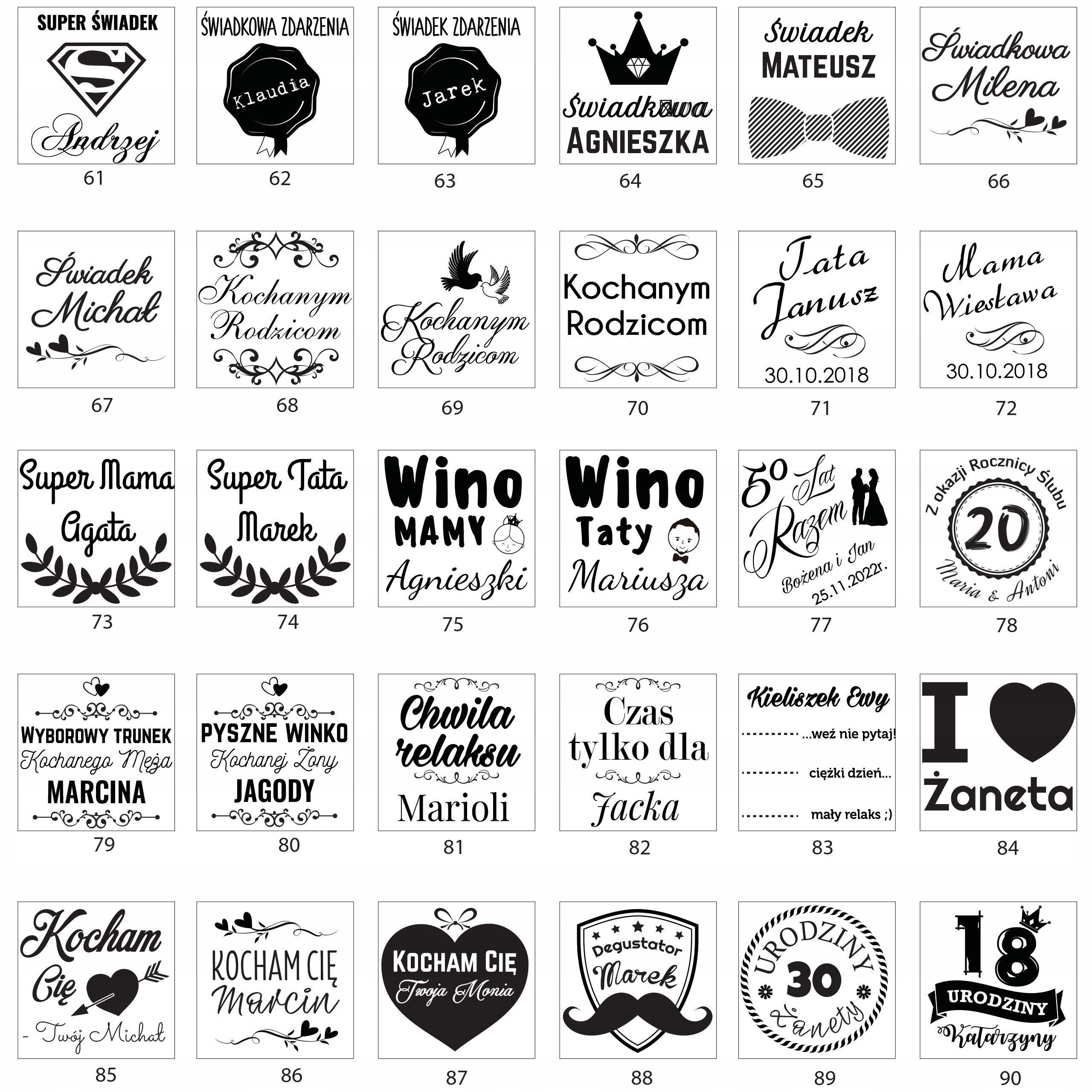 Скло може бути прикрашений індивідуальною гравюром , що дасть йому унікальний персонаж. Імена, дата, спеціальна відданість або смішний напис - гравюра робить склянку унікальним подарунком. Завдяки тривалому гравюрі, персоналізація не зникне, і скло буде задати око довго. Ми підготували весільні проекти для пар на день народження, а також окуляри для батьків, свідків, ювілею та не тільки! Так Можна персоналізувати.
