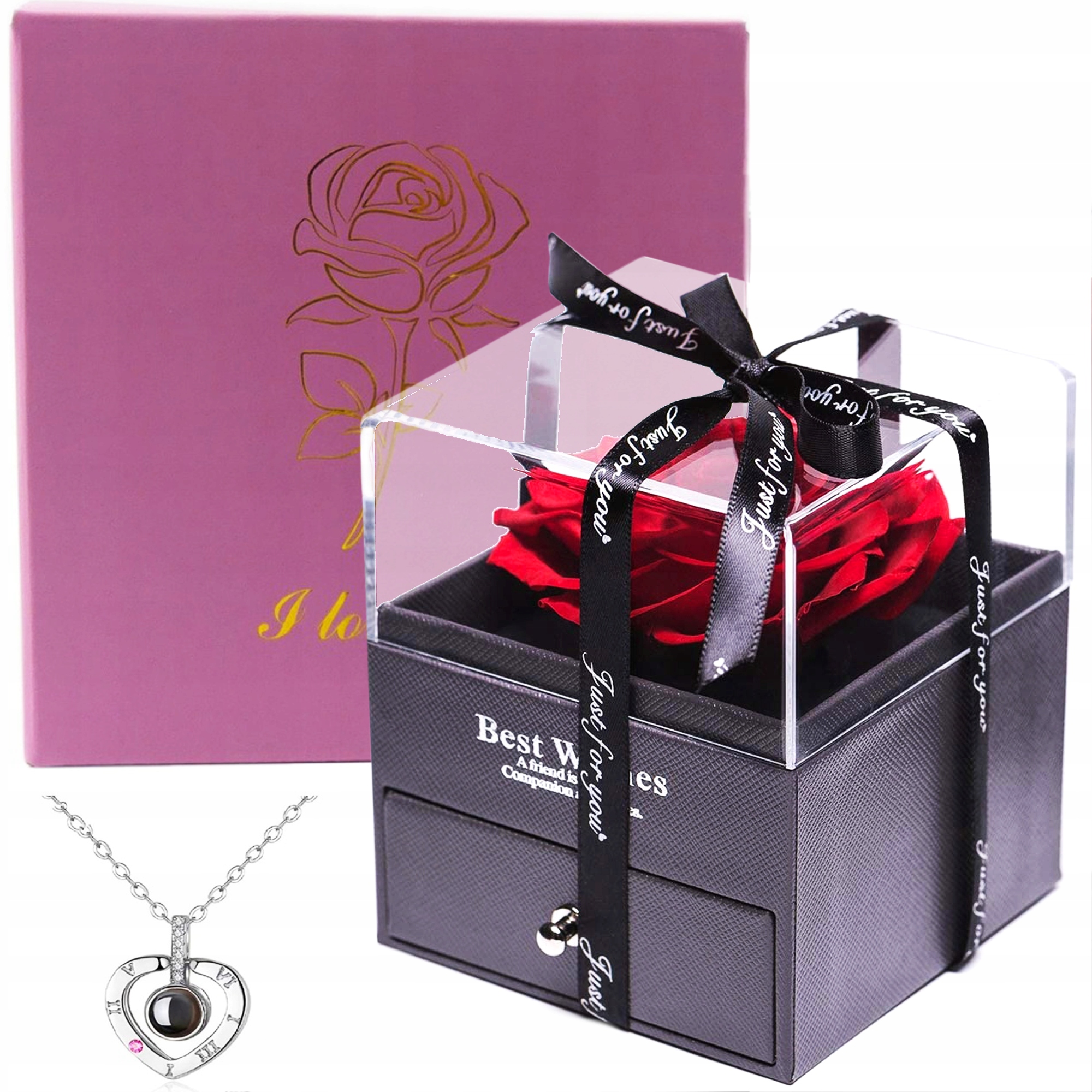 ЧЕРВОНА ВІЧНА ТРОЯНДА В КОРОБЧЦІ З НАМИСТОМ