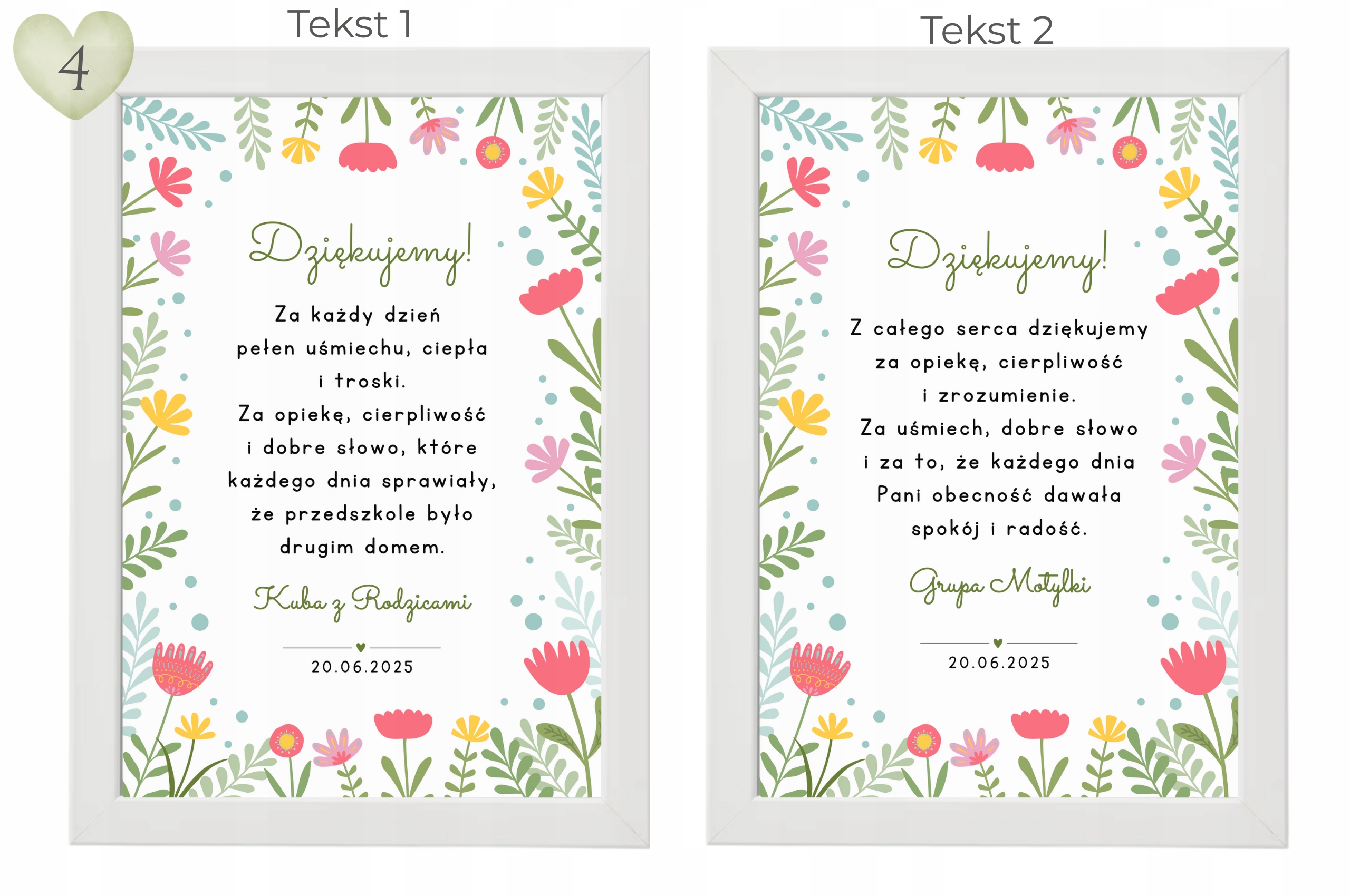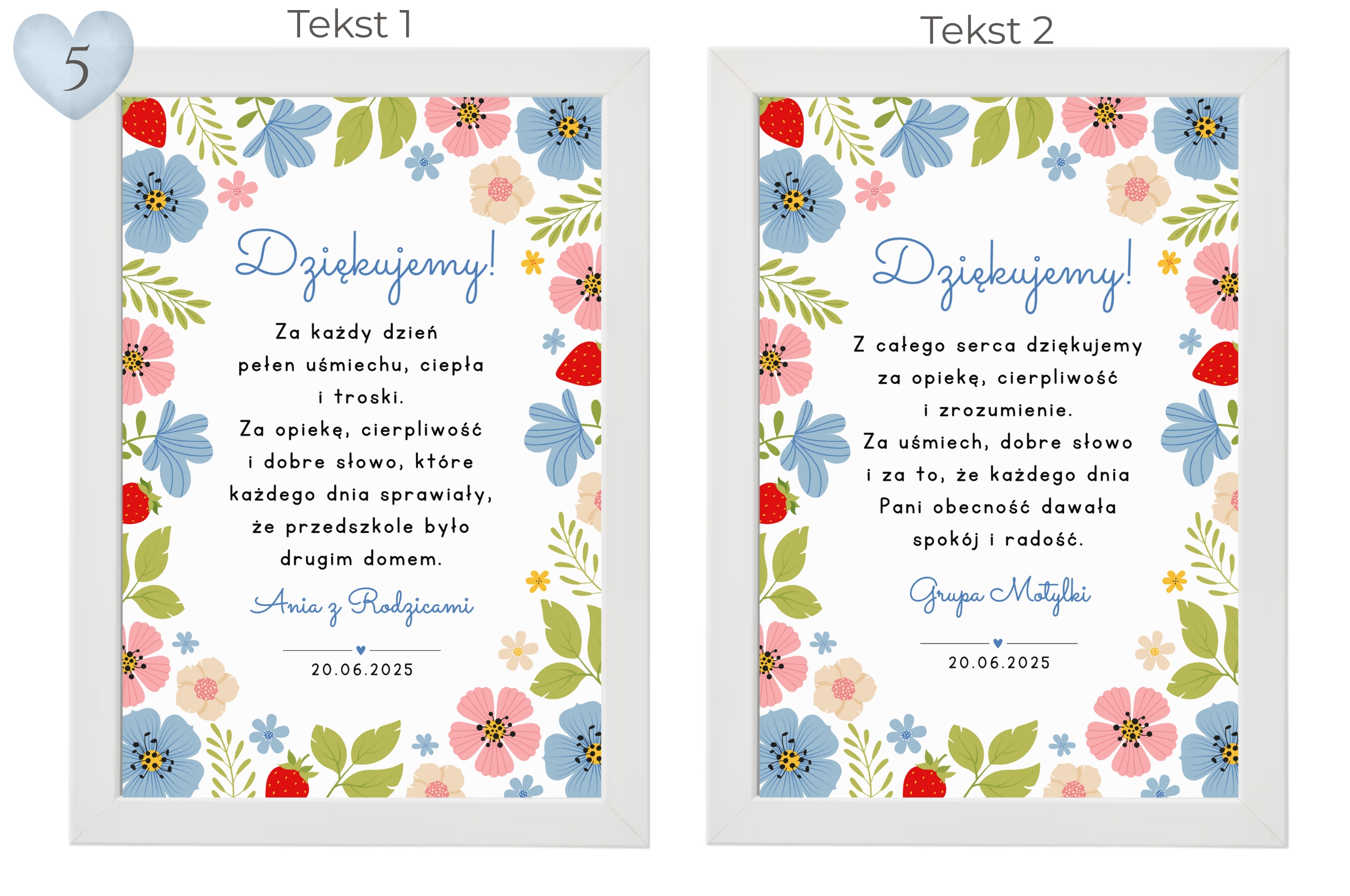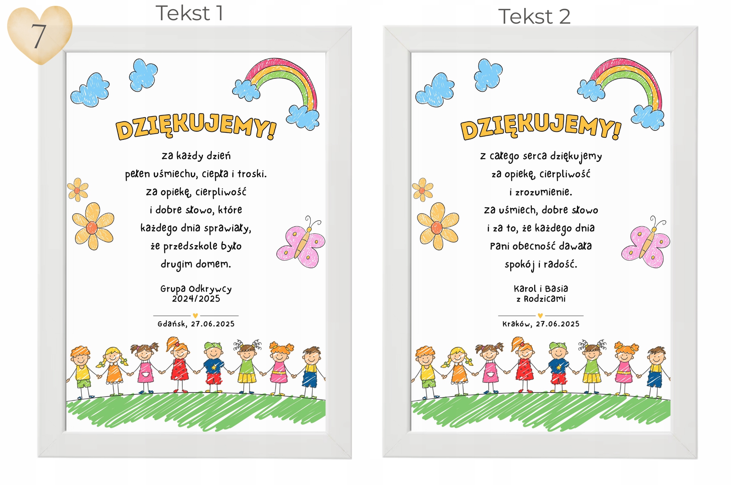 - Підпис (наприклад, ім'я дитини, "з батьками", "група żabki"),