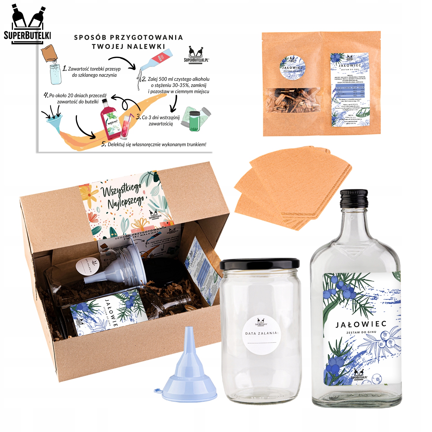 подарункові набори для виготовлення джин -це пропозиція для кожного любителів житла, виготовлених напоїв. Подарунковий набір містить повну версію необхідних елементів, які створить надзвичайно смачний напій простим, зручним та захоплюючим способом. Шукаєте подарунок? Виберіть варіант "купити в подарунок", а своїм близьким є унікальним подарунком, який здивує і будь ласка!