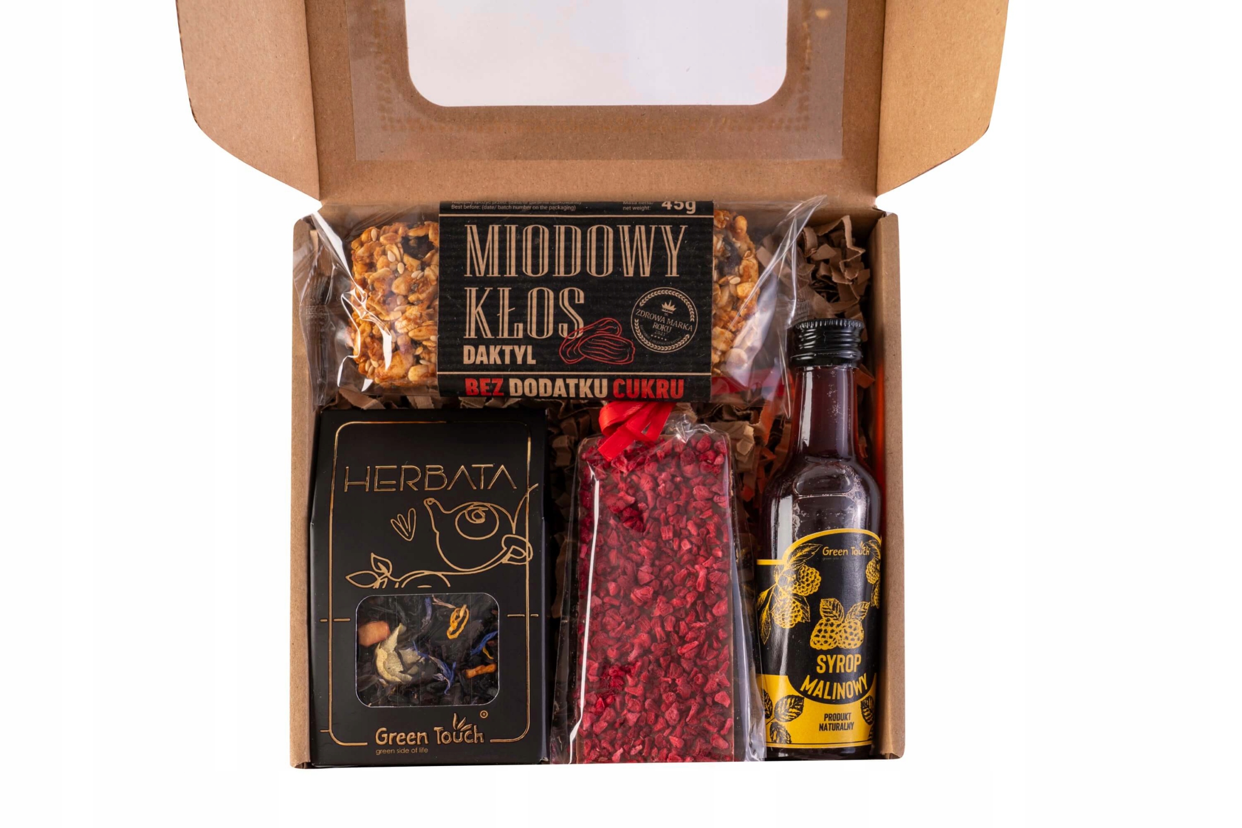 Крафтовий подарунковий набір малиновий сироп, чай, шоколад, батончик ліо