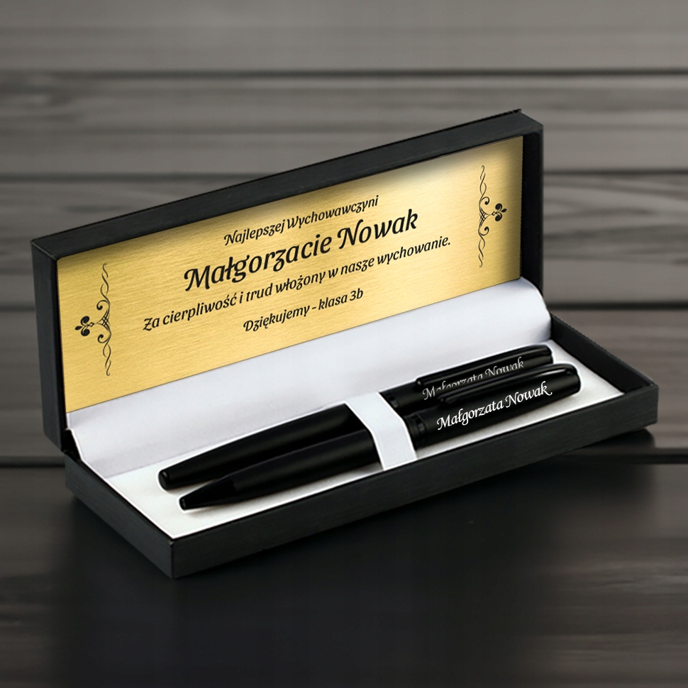 Зробіть своєму вчителю вишуканий подарунок, зробивши індивідуальний подарунок у вигляді набору канцелярського приладдя з гравіюванням із присвятою.