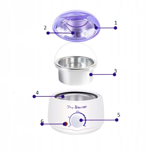 Розігрівач воску в балончику. Має регульовану температуру нагріву. Завдяки своїй технології він швидко нагріває віск і підтримує його постійну температуру.