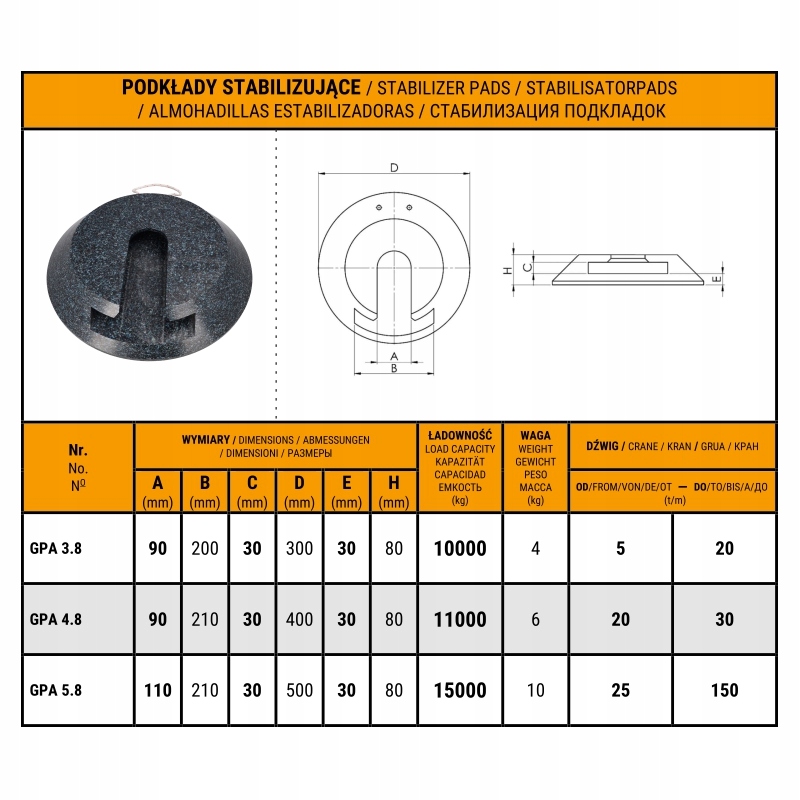 Поліетиленова конічна основа з пазом під лапу опори автокранів, підйомників, екскаваторів, бетононасосів і всіх інших транспортних засобів, яким для роботи потрібна стійка і міцна основа. Канавка в основі запобігає зсуву ніжки з центру під час використання.