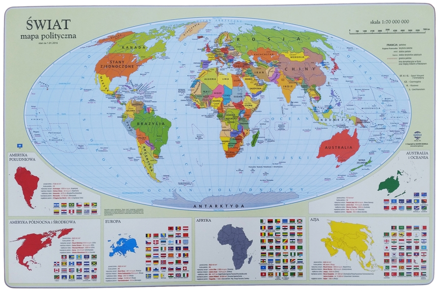 Podkładka na biurko - Mapa Polityczna Świata +dane