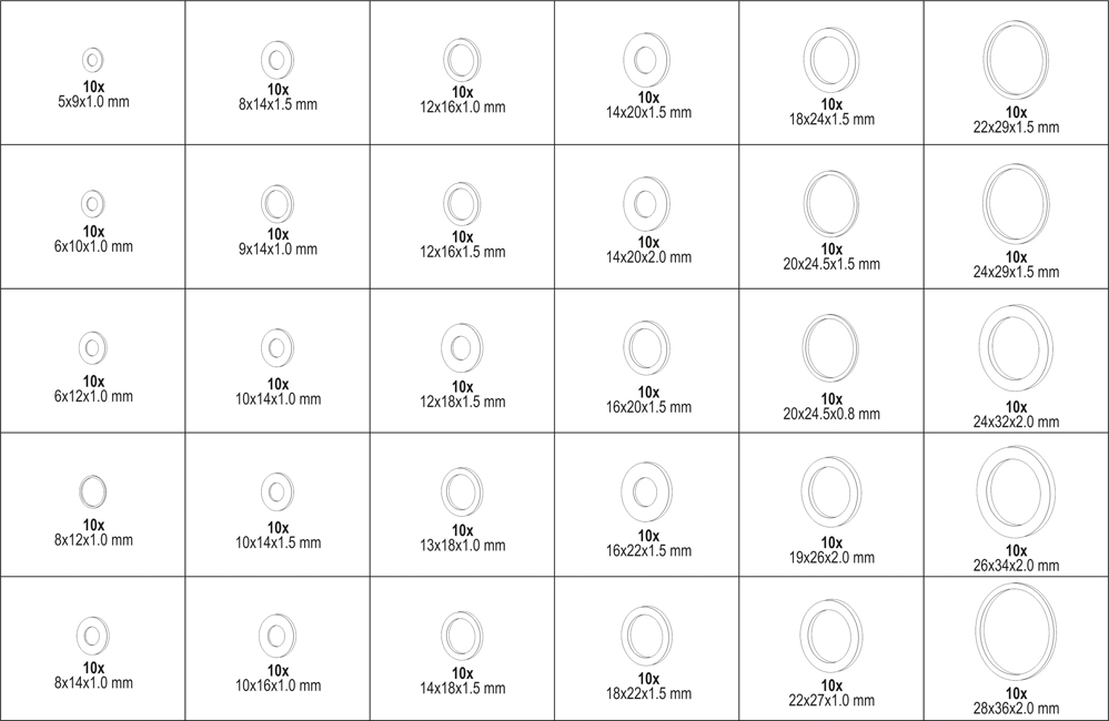 PODKŁADKI MIEDZIANE TYP MIĘKKI 300 SZT ZESTAW MIX