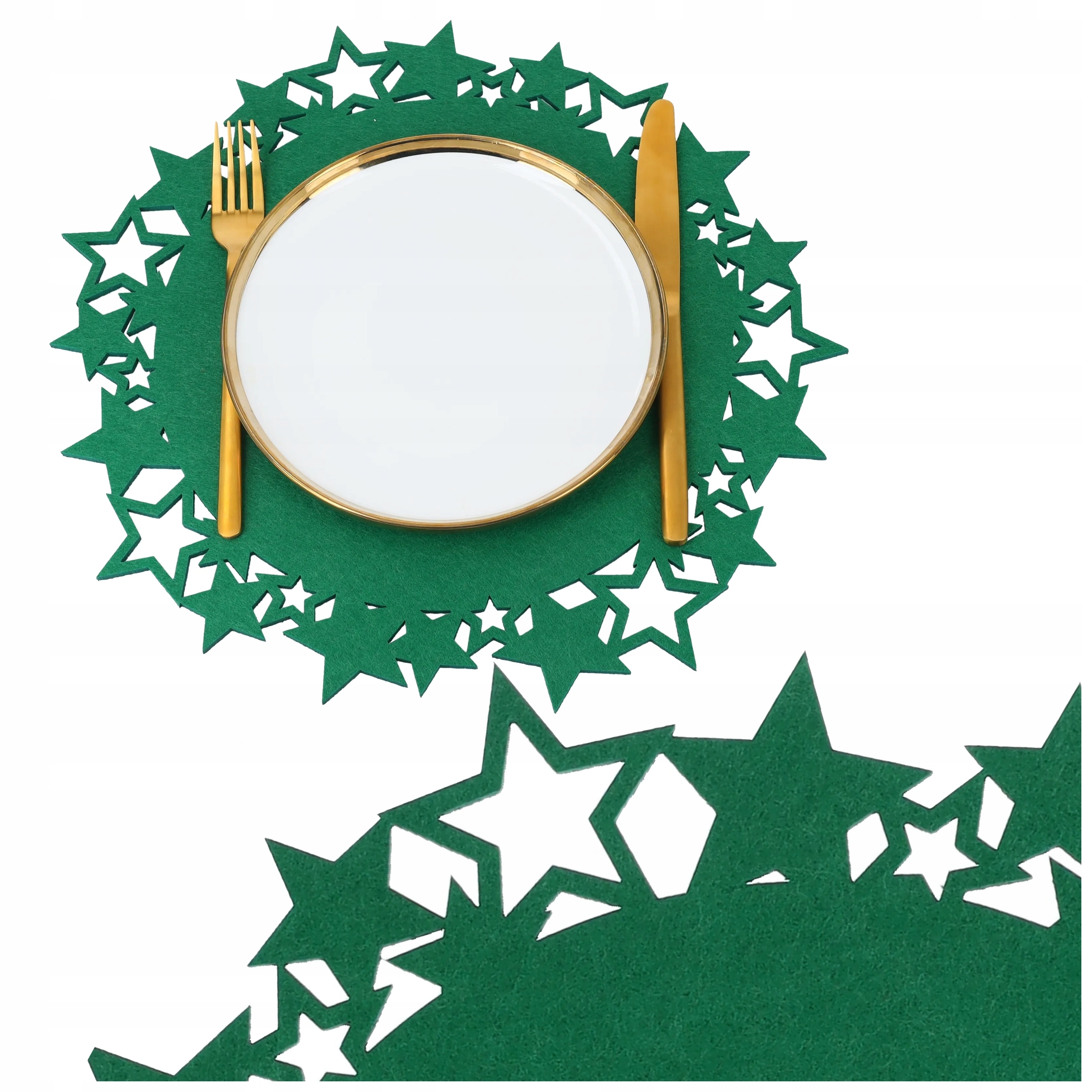 PODKŁADKI pod TALERZE 6szt zielone GWIAZDKI filc ozdoby świąteczne na stół