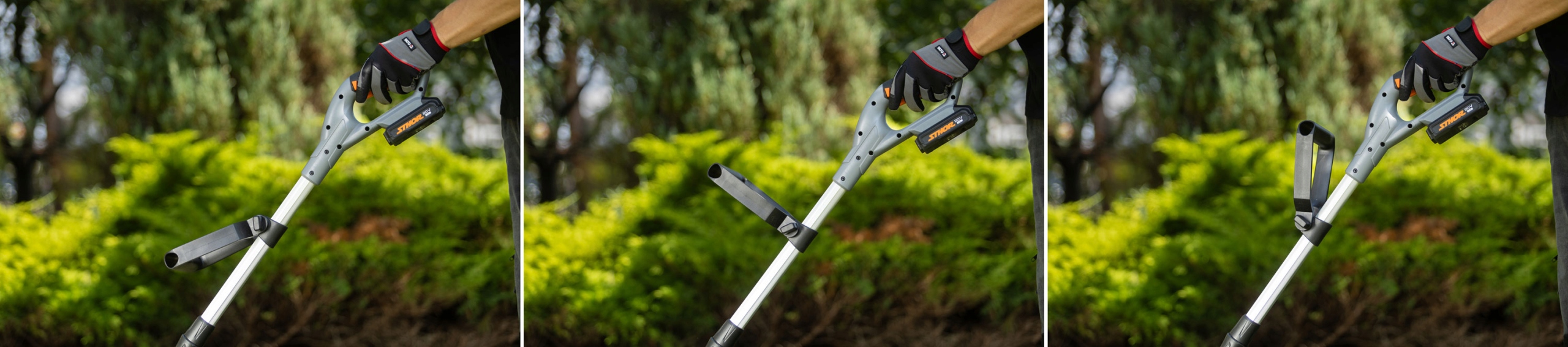 Коригування також включаєзміну площини різання з горизонтальної (косіння газону) на вертикальну (обрізування).
