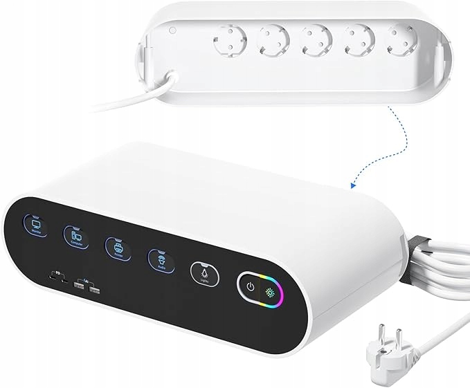 - Подовжувач живлення з 5 розетками. 5 розеток з незалежним вимикачем готові для підключення побутової техніки та оргтехніки, тому ви можете зручно відключати окремі прилади для економії енергії та уникнення перевантаження ланцюга. Розумні наклейки із символом пристрою служать нагадуванням і показують, яким пристроєм керує кожна кнопка перемикача.