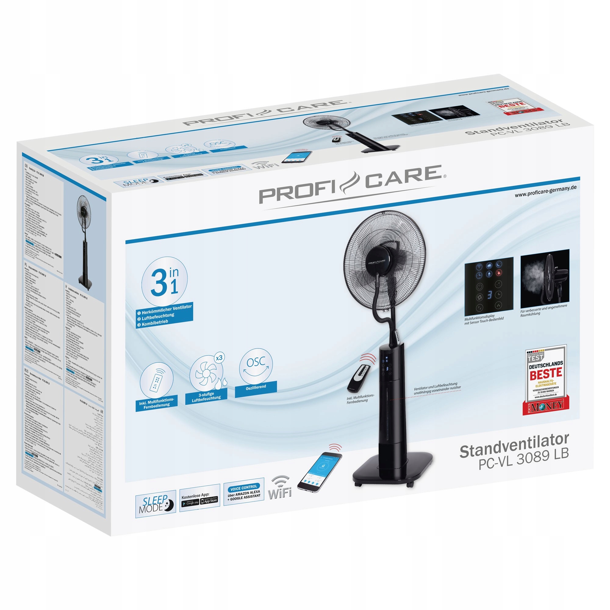 Найважливіші функції стоячого вентилятора ProfiCare PC-VL 3089 LB із зволожувачем: