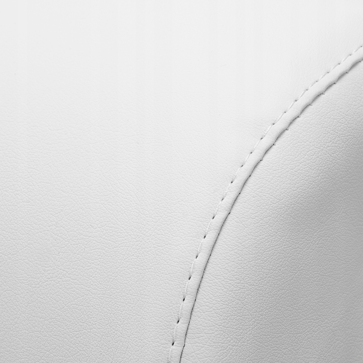 П'ятизіркова тверда основа забезпечує виключну стійкість табурета навіть під час інтенсивного використання. Прогумовані колеса дозволяють легко і плавно переміщати його, не пошкоджуючи підлогу. Крісло характеризується міцністю та стійкістю, а його оббивка з високоякісного шкірозамінника білих відтінків стійка до вологи та легко утримується в чистоті, що додатково підвищує комфорт використання.