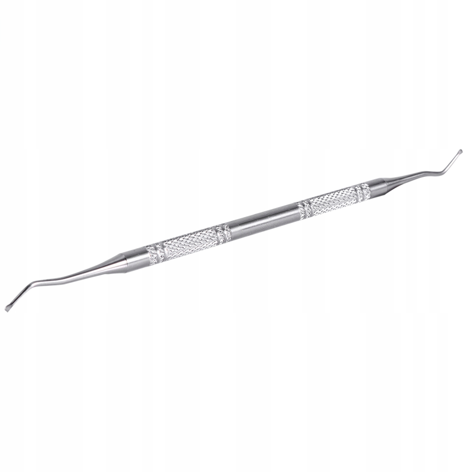 Цей двосторонній інструмент із нержавіючої сталі видаляє нігті зі шкіри та допомагає нанести антисептик крем.