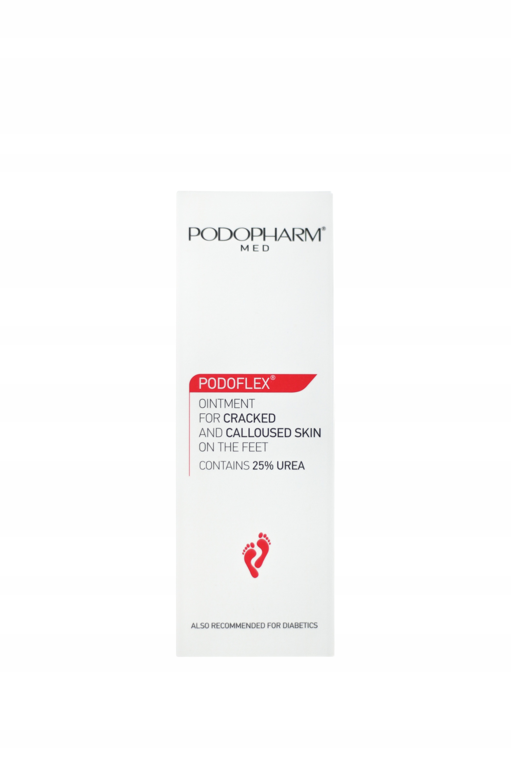 Мазь Podopharm® - це унікальна комбінація натуральних жирів олії ши, веганського ланоліну Lipex L'sens і рослинних пом'якшувачів. Зволожує, регенерує та змащує. Крім того, алантоїн сприяє регенерації пошкодженого епідермісу. Препарат містить 25% сечовини та провітамін B5, які роблять шкіру м'якою та еластичною та запобігають надмірному зроговінню. Натуральні екстракти та олії шавлії, розмарину, лаванди та м'яти перцевої надають тонізуючу та освіжаючу дію.