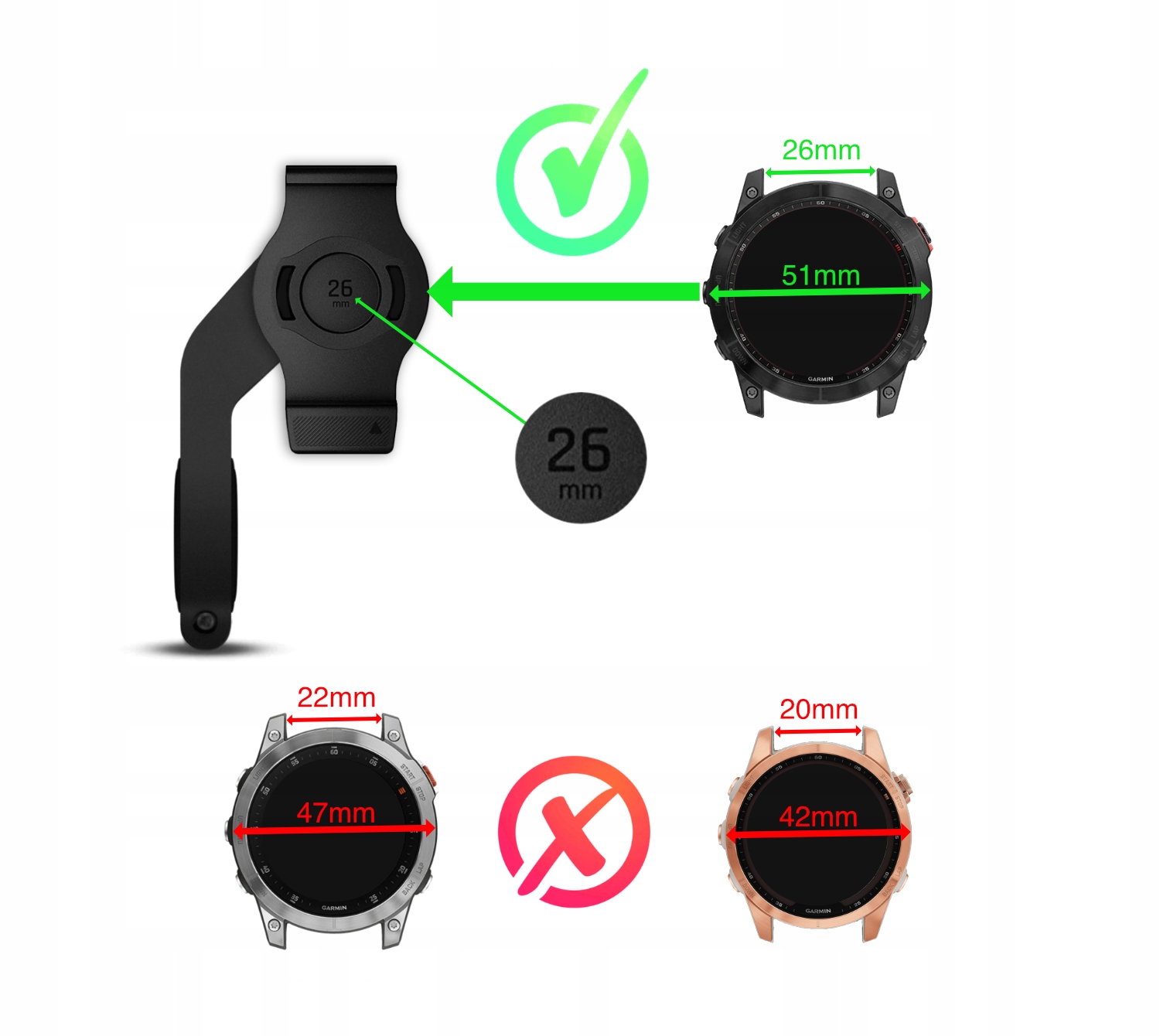 *Choć від Garmin Fenix 5X і Fenix серії 5X Plus мають однакову ширину ремінця (26 мм) і діаметр корпусу (51 мм), але через різну конструкцію корпусу вони несуміснийз швидкознімними змінними тримачами.