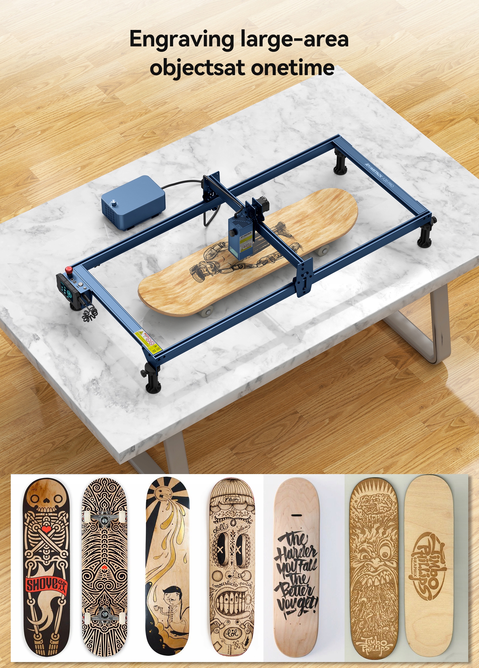 1. Швидко та зручно збільште розмір гравіювання: просто замініть вал редуктора гравірувальної машини серії ATOMSTACK, щоб отримати велику площу гравіювання 850*400 мм, не купуючи жодних додаткових аксесуарів для задоволення ваших потреб у гравіруванні великої площі.
