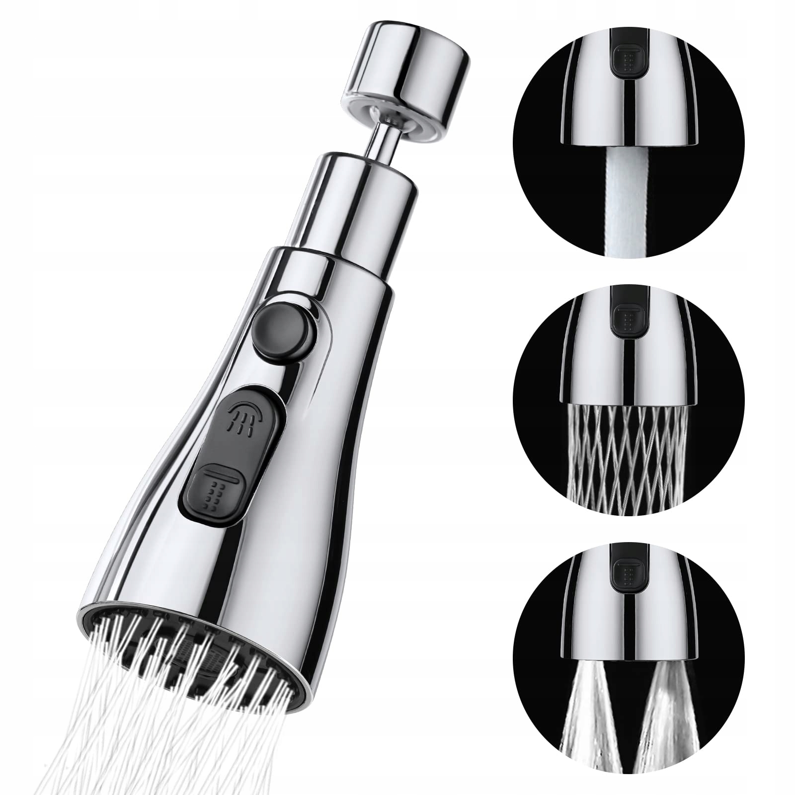 Двофункціональний аератор - це спеціалізований пристрій, який допоможе вам легко заощадити воду та гроші. Продукт зменшує використання води до 70%, а також полегшує повсякденні дії, такі як миття посуду, завдяки рухливій головці та двом типам струменя води - голчастому або аерованому.