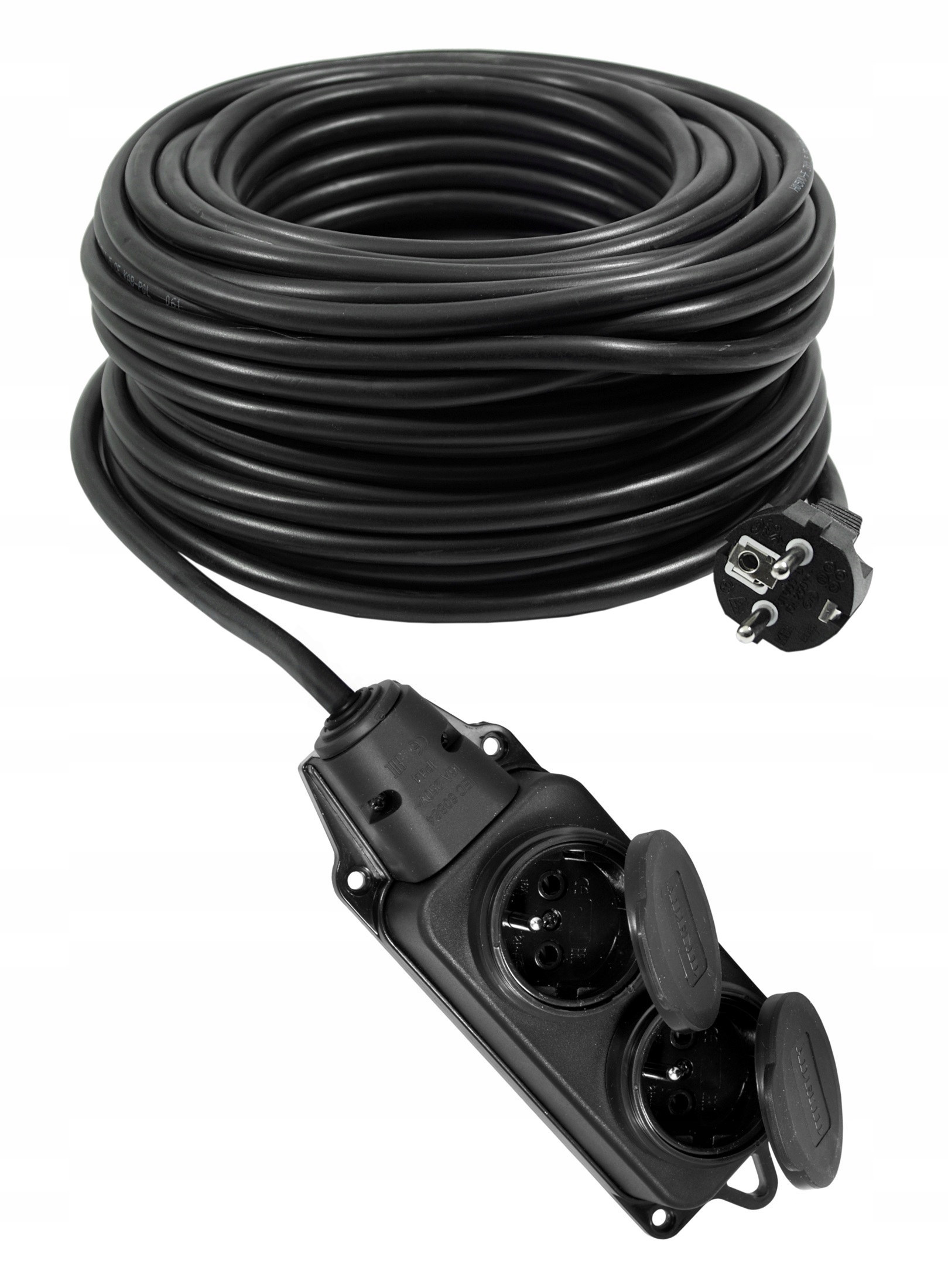 Подвійна стрічка з міцного матеріалу, стійкого до несприятливих погодних умов. Має заземлення польського типу. Забезпечує герметичність IP44, навіть під час роботи! Виготовлений із гуми, він гарантує тривалий термін служби виробу, ударостійкість, стійкість до нафти та масла.