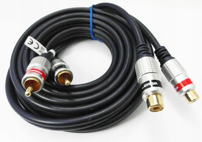 Висококласний подовжувач Vitalco з 2 штекерами RCA на одному кінці та 2 гніздами RCA на іншому. Подвійно екрановані кабелі з безкисневої міді OFC з литими золотими штекерами гарантують найвищу якість передачі сигналу.