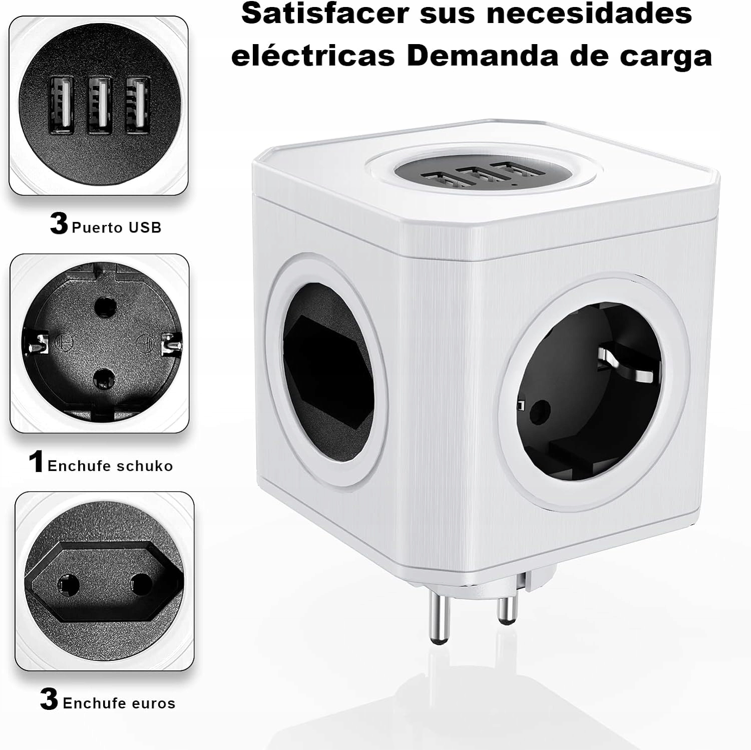 - 【Більше】 Завдяки 1 заземленій розетці, 3 європейським розеткам і 3 USB-портам багаторазове USB-роз’єм дозволяє заряджати кілька пристроїв одночасно та забезпечує максимальну безпеку, комфорт і надійність.