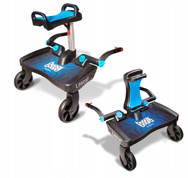 Бренд Buggyboard Maxi + Lascal - повний набір, всебічне рішення для батьків з двома дітьми. Ідеально підходить для всіх обставин, коли нам потрібно стежити за обома дітьми або коли старша дитина втомиться під час ходьби. Захисна рамка, великі колеса, система амортизації та система "підйому та зберігання". Включає додатковий набір роз'ємів - Швидка збірка додаткових ліжок у дві дитячі коляски, не переводячи роз'єми.