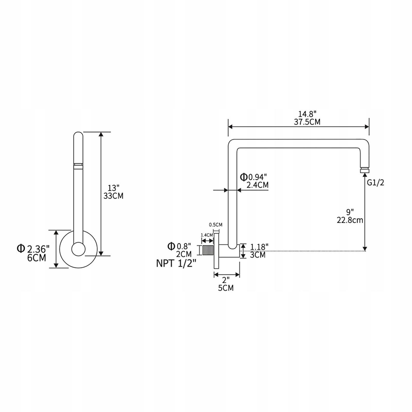 - Довжина з’єднувальної труби: 33 см / 13 дюймів