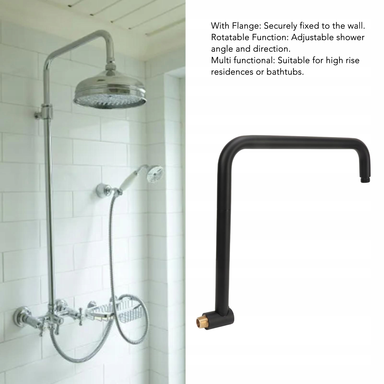 5. Універсальне використання: підходить для багатоповерхових житлових будинків або ванн, цей душовий кронштейн може бути розширений за потреби, щоб задовольнити різноманітні потреби в душі, що робить його універсальним вибором для будь-якої ванної кімнати.