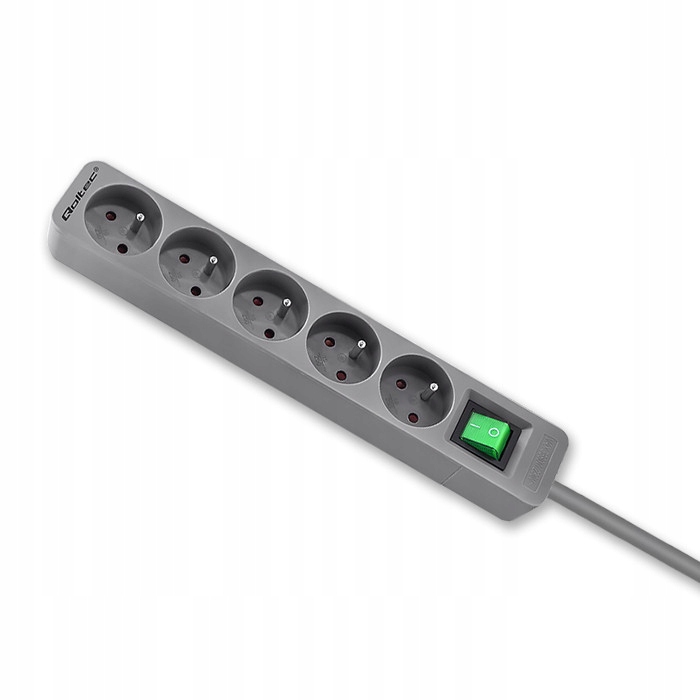 Подовжувач живлення Qoltec | 5 слотів | 1,8 м | Сірий