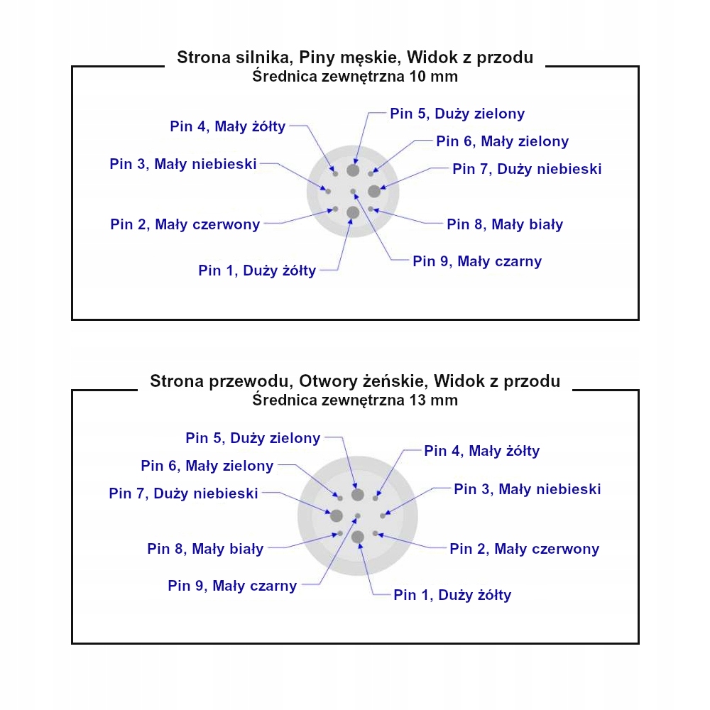 Кабель містить загалом 9 провідників - 3 товщі для фаз живлення та 6 тонших для датчиків Холла та швидкості, що робить його ідеальним для систем електроприводу.