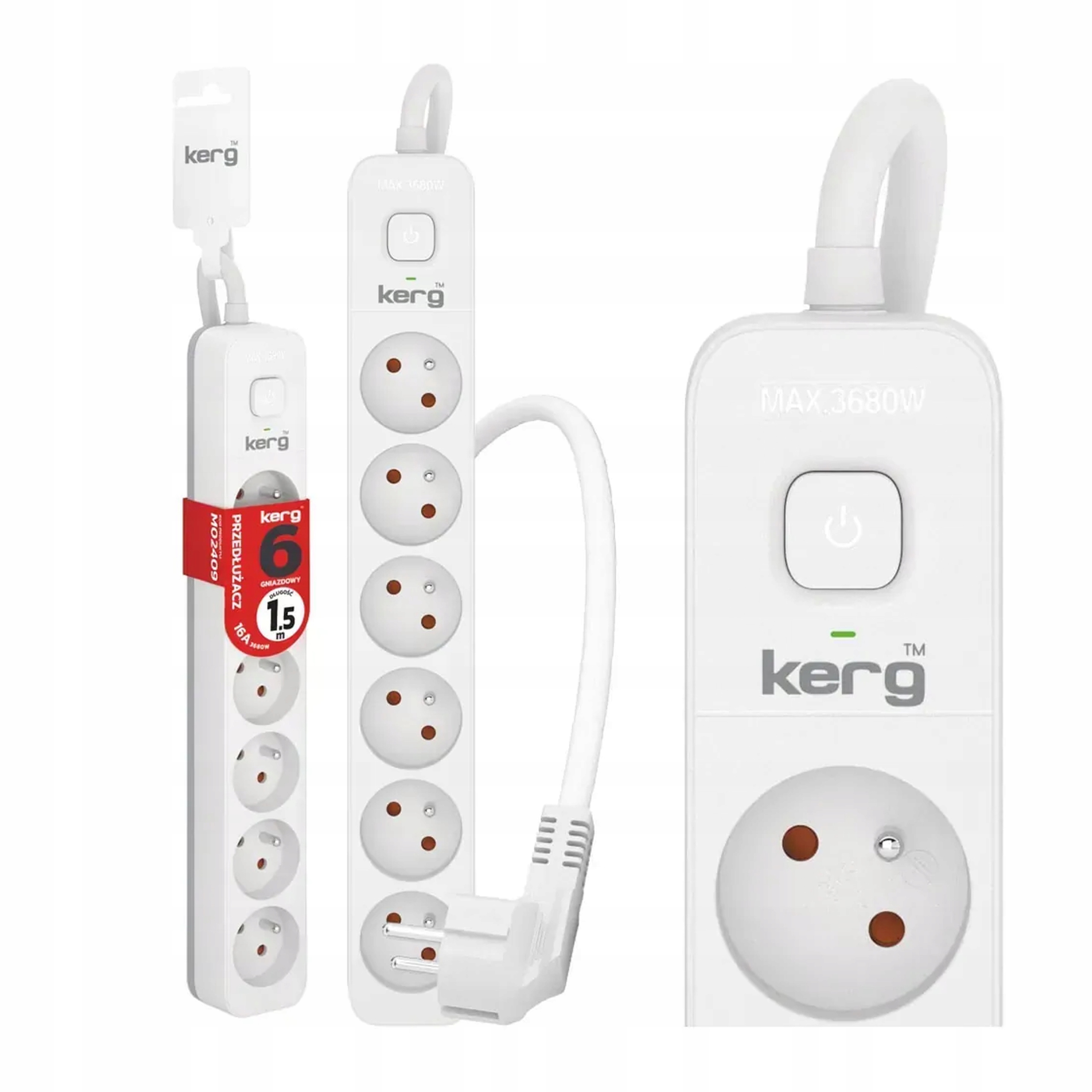 Подовжувач KERG POWER STRIP 6 ГНІЗДІВ 16А З КНОПКОЮ ON/OFF 1,5 м