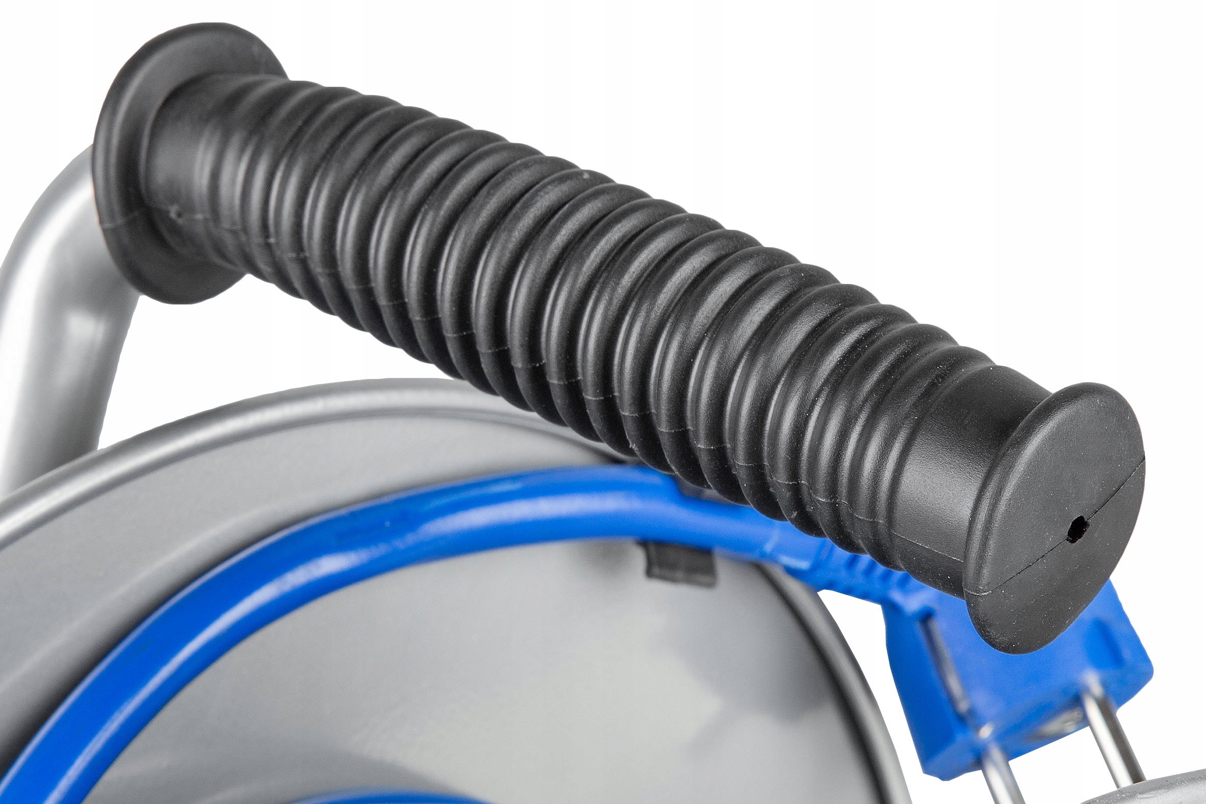 Подовжувач також має ручку проти ковзання та гальмо, що запобігає надмірному та випадковому розмотуванню кабелю.